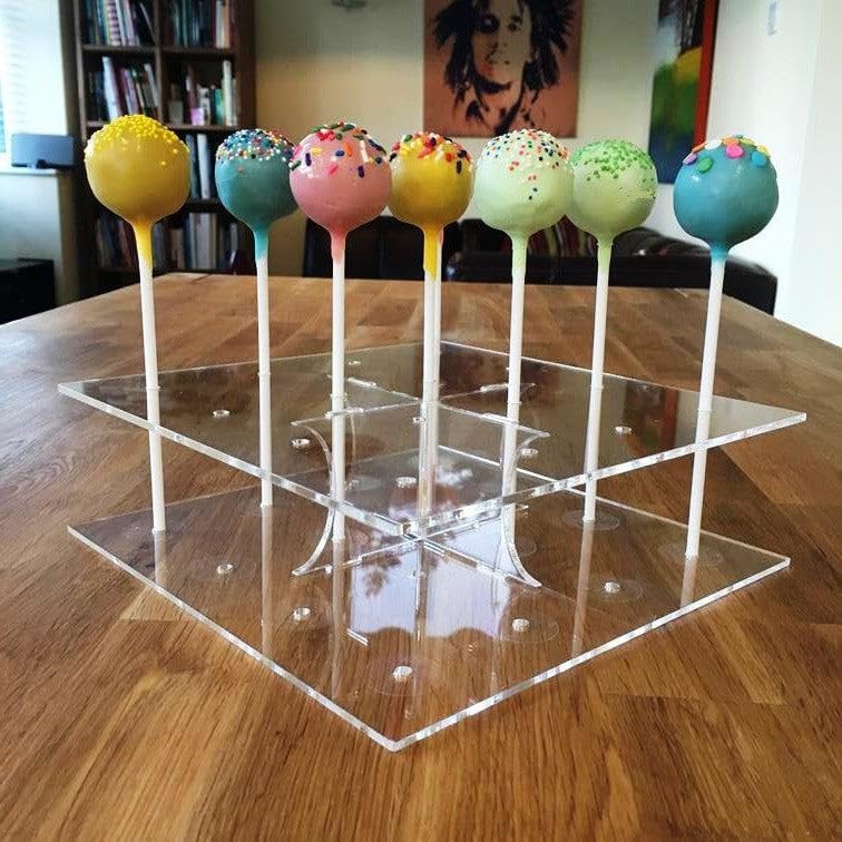 Perfekt für deine nächste Party! Dieser quadratische Cake-Pop-Ständer hat 9 Stäbe und hält deine leckeren Cake-Pops sicher fest. Mit Senkbohrungen am Boden - da fällt nichts um! Die abgerundeten Ecken sehen nicht nur schön aus, sondern sind auch super sicher für Kinderhände. Einfach zusammenzubauen - kein Werkzeug nötig. Ideal für Geburtstage, Baby-Shower, Hochzeiten oder einfach so. Ob bunte Cake-Pops, Lollipops oder kleine Dekorationen - damit wird deine Candy-Bar zum Hingucker! Stabil und praktisch - deine Gäste werden begeistert sein. Einfach die Cake-Pops draufstecken und die Party kann beginnen!