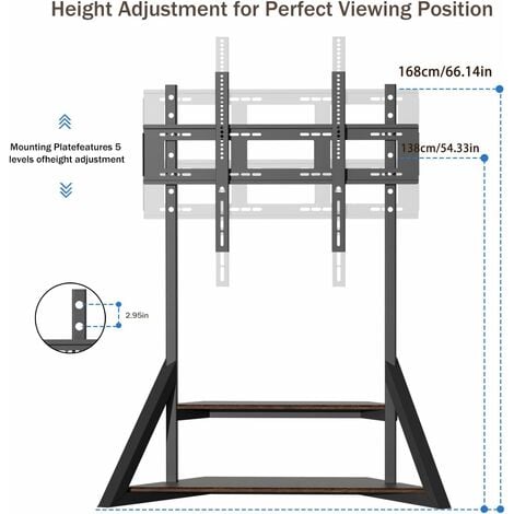 Passt für Fernseher von 40 bis 100 Zoll, mit einem Maximalgewicht von 100 kg. Der VESA-Bereich geht von 200x200 mm bis 800x600 mm - also für so gut wie jedes TV-Modell. Die Höhe ist von etwa 160 cm bis 195 cm verstellbar - ideal für optimale Sichtverhältnisse.