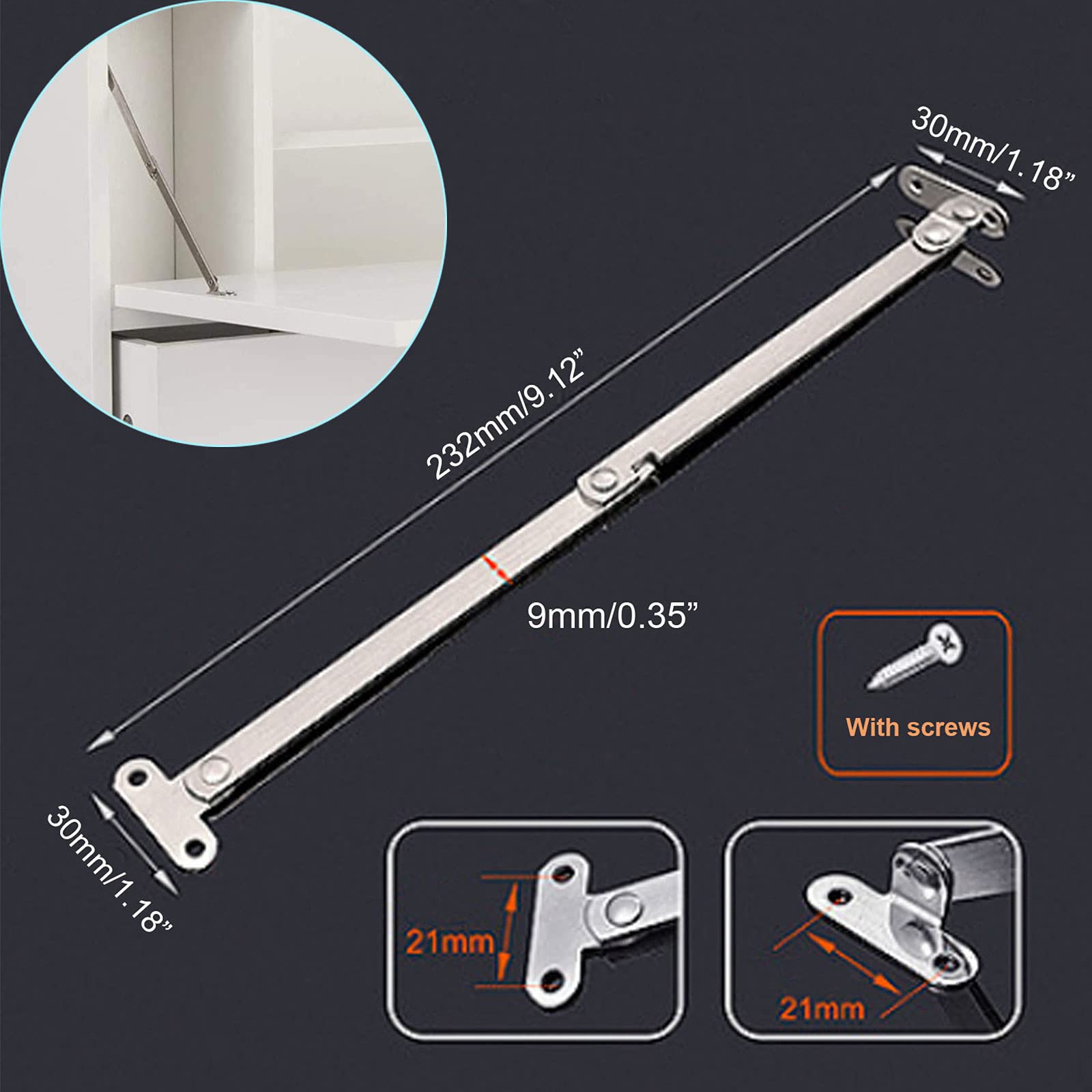 Praktische Klappenscharniere aus Edelstahl - perfekt für deine Möbelprojekte! 4 Stück im Set plus Schrauben und Schraubendreher - alles dabei, was du brauchst. Die maximale Zugkraft von 20kg pro Paar hält auch schwerere Klappen sicher. Super einfach zu montieren und absolut geräuschlos beim Öffnen und Schließen. Ideal für Schranktüren, Klappmöbel, Boxen oder versteckte Schränke. Das vernickelte Material rostet nicht und hält ewig. Mit der verstellbaren Schnalle passt du das Gewicht perfekt an deine Klappe an. Ob in der Küche, im Wohnzimmer oder im Home Office - diese Scharniere machen jeden Möbelumbau zum Erfolg!