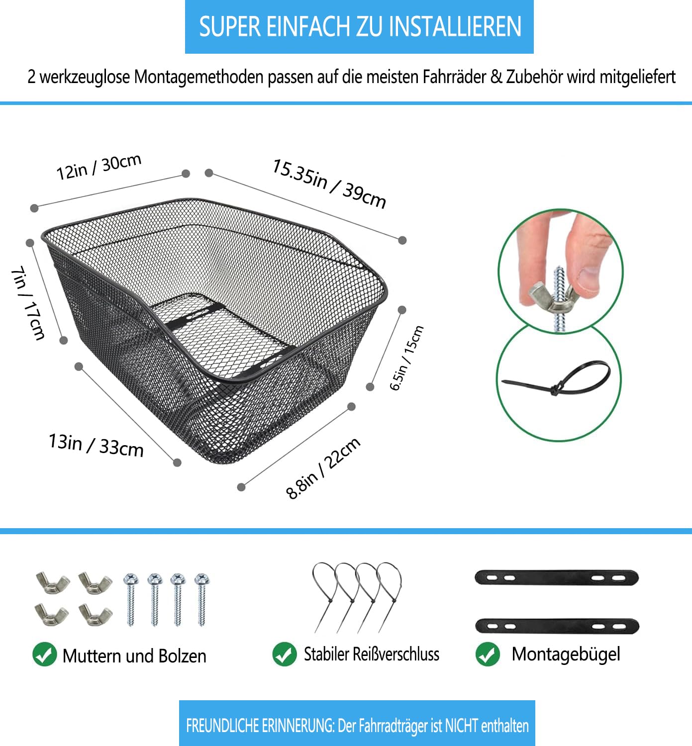 Brauchst du mehr Stauraum für dein Fahrrad? Der BINOTHINK Hinterradkorb ist genau das Richtige! Aus stabilem Metall gefertigt und mit ner Anti-Rost-Beschichtung, hält der Korb bis zu 25 kg aus. Mit ganzen 22 Litern Fassungsvermögen ist genug Platz für Einkäufe, Schulranzen, oder sogar für deinen kleinen Hund. Der Korb passt auf die meisten Fahrrad-Gepäckträger und ist super einfach zu montieren. Reinigen? Kein Problem - einfach mit nem feuchten Tuch abwischen oder mit Wasser abspülen. Perfekt für den täglichen Weg zur Arbeit, Schule, oder für nen gemütlichen Picknick-Ausflug. Mach dein Fahrrad alltagstauglich!