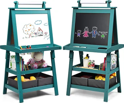 Kinder lieben es zu malen - und mit dieser Eric Staffelei von AXI wird's zum echten Erlebnis! Aus 100% FSC-zertifiziertem Hemlockholz gefertigt, ist sie robust und umweltfreundlich. Die beidseitig nutzbare Plexiglas-Leinwand ist super leicht zu reinigen - einfach abwischen und schon kann das nächste Kunstwerk entstehen. Die vier integrierten Farbbehälter (grün, rot, blau, gelb) verhindern lästiges Umkippen und halten alles ordentlich. Auf der anderen Seite der Staffelei ist genug Platz für weitere Malutensilien, sodass zwei Kinder gleichzeitig kreativ sein können. Mit den Maßen 50x70x105cm ist sie perfekt für Kinder ab 3 Jahren geeignet. Das unbehandelte Holz kann nach Belieben bemalt oder gebeizt werden - so wird jede Staffelei ein Unikat. Getestet nach europäischen Sicherheitsnormen und mit CE-Zeichen - für unbeschwerten Malspaß ohne Bedenken!
