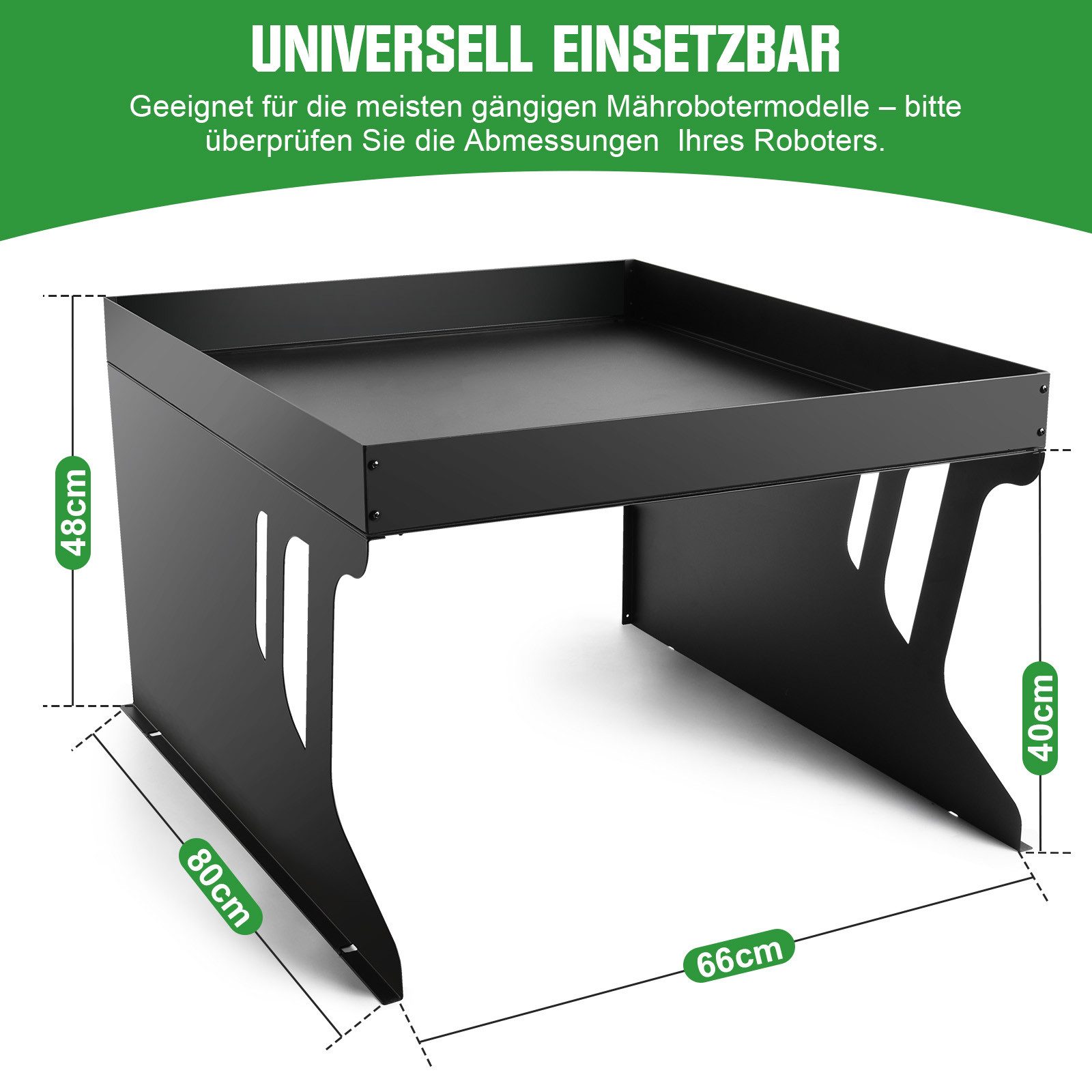 Dein Mähroboter hat es verdient, gut untergebracht zu sein! Diese stabile Garage aus Stahl bietet perfekten Schutz vor Sonne, Regen und Wind. Mit den Maßen 80x66x48cm (Innenhöhe 40cm) finden die meisten gängigen Modelle bequem Platz. Das Besondere: Das integrierte Pflanzbeet auf dem Dach verwandelt die Garage in ein grünes Highlight für deinen Garten! Aus 1,7mm verzinktem und pulverbeschichtetem Stahlblech gefertigt, hält sie locker 15 Jahre durch - getestet mit 1500h Salzsprühtest. Die Oberfläche ist so hart wie Autolack und UV-beständig. Bei 14kg Gewicht steht sie bombenfest, hält aber trotzdem bis zu 7kg Dachlast aus. Die Ablauflöcher verhindern Staunässe im Pflanzbereich. Einfach zusammenzubauen, wartungsfrei und mit 4 Erdnägeln für extra Stabilität. Dein Roboter bleibt sauber, trocken und immer einsatzbereit - und dein Garten sieht dabei noch schöner aus! Einfach aufstellen, bepflanzen und den Rundum-Schutz genießen.