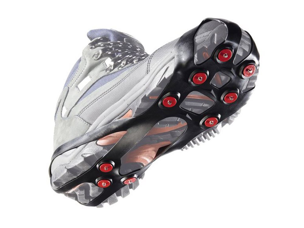 Schlitterpartie adé! Mit diesen praktischen Schuhspikes meisterst du jeden vereisten Weg. Jeder Spike hat 10 robuste Stahlnägel, die dir auf Eis und Schnee sicheren Halt geben. Aus TPE-elastischem Gummi gefertigt, sind sie super flexibel und reißfest. Die Stahlnägel sind rostfrei und korrosionsbeständig - halten also ewig! Besonders clever: Die 10 Nägel sind genau auf die beanspruchten Bereiche des Fußes verteilt für optimale Gewichtsverteilung. Und das Beste: An- und Ausziehen geht ratzfatz! Einfach über deine normalen Schuhe ziepen - ob Turnschuhe, Wanderschuhe oder Schneestiefel. Perfekt fürs Eisfischen, Jagen, Wandern oder einfach nur für den sicheren Weg zur Arbeit im Winter. Die Größe L passt für Schuhgrößen 40-45 (US 7-11). Auch für Kinder und ältere Menschen geeignet - so kann die ganze Familie den Winter sicher genießen. Kein lästiges Rutschen mehr auf glatten Gehwegen oder beim Winterwandern. Einfach in die Jackentasche stecken und bei Bedarf überziehen. Diese Spikes sind wirklich ein Lebensretter bei winterlichen Bedingungen!