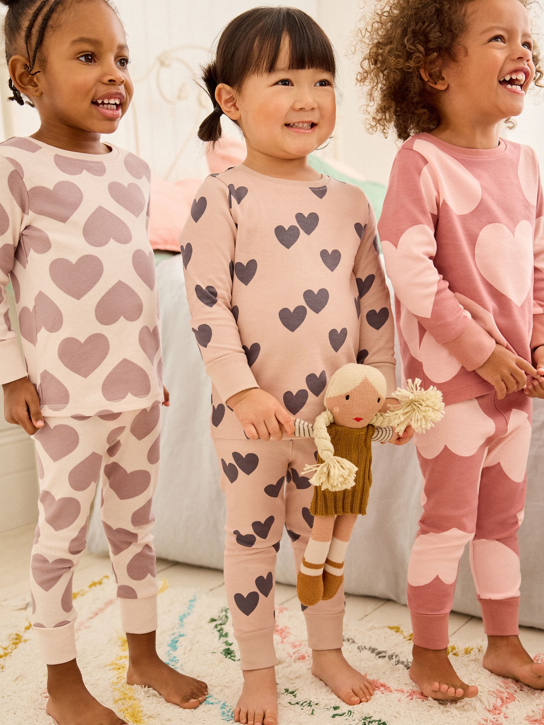 Suchst du gemütliche Schlafanzüge für deine Kleinen? Der NEXT Kuschelige Pyjamas Stampy 3er-Pack ist genau das Richtige! \\n\\nMit drei verschiedenen Designs in einem Pack sparst du nicht nur Geld, sondern hast auch immer Ersatz parat. Die Pyjamas sind aus 100% weicher Baumwolle - super angenehm auf der Haut und perfekt für eine gute Nachtruhe. \\n\\nWas die Schlafanzüge besonders macht: \\n• Langärmelige Oberteile mit bequemem Rundhalsausschnitt \\n• Lange Hosen mit elastischem Bund für optimalen Sitz \\n• Verschiedene bunte Drucke - da ist für jeden Geschmack was dabei \\n• Einfache Pflege: 40°C Maschinenwäsche, trocknergeeignet \\n\\nDie Pyjamas fühlen sich nicht nur weich an, sie sind auch praktisch. Der elastische Bund sitzt perfekt, ohne zu zwicken, und die Baumwolle ist atmungsaktiv. So schwitzt dein Kind nicht so schnell. \\n\\nPerfekt für den Kindergarten, Übernachtungen bei Freunden oder einfach für gemütliche Abende zu Hause. Und wenn mal was daneben geht - keine Sorge! Die Pyjamas sind bei 40 Grad waschbar und bleichen nicht aus. \\n\\nEin richtig praktisches Set, das lange hält und immer gut aussieht. Deine Kids werden die süßen Muster lieben! Und du freust dich über die unkomplizierte Pflege und den guten Preis für drei qualitative Schlafanzüge.