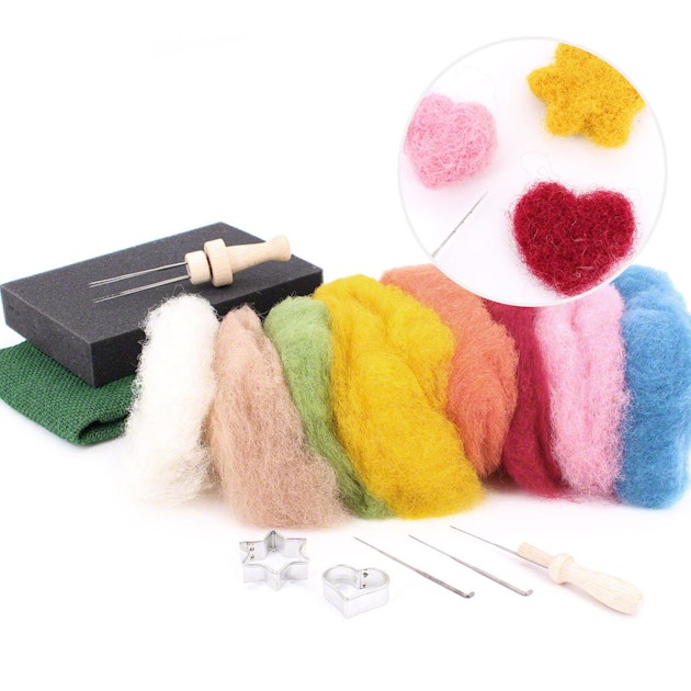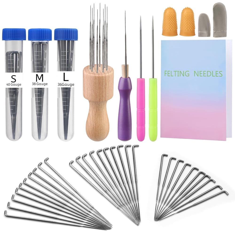 Perfekt für alle, die mit Nadelfilzen starten wollen! Dieses komplette Set enthält alles was du brauchst: eine robuste Filzmatte (15,5x12,5cm), eine hochwertige Filznadel und einen ergonomischen Filznadelhalter. Die Matte schützt deine Tischplatte und die Filznadeln. Der Nadelhalter liegt super in der Hand und macht das Filzen viel angenehmer. Ideal für kleine Figuren, Dekorationen oder kreative Geschenke. Einfach die Filzwolle nehmen, auf die Matte legen und mit der Nadel bearbeiten - schon entstehen die schönsten Kreationen! Auch für erfahrene Filzer super als Ergänzung. Achte darauf, nicht direkt auf harten Oberflächen zu filzen, damit die Nadeln nicht brechen. Tauche ein in die faszinierende Welt des Filzens und erschaffe einzigartige Handarbeiten!