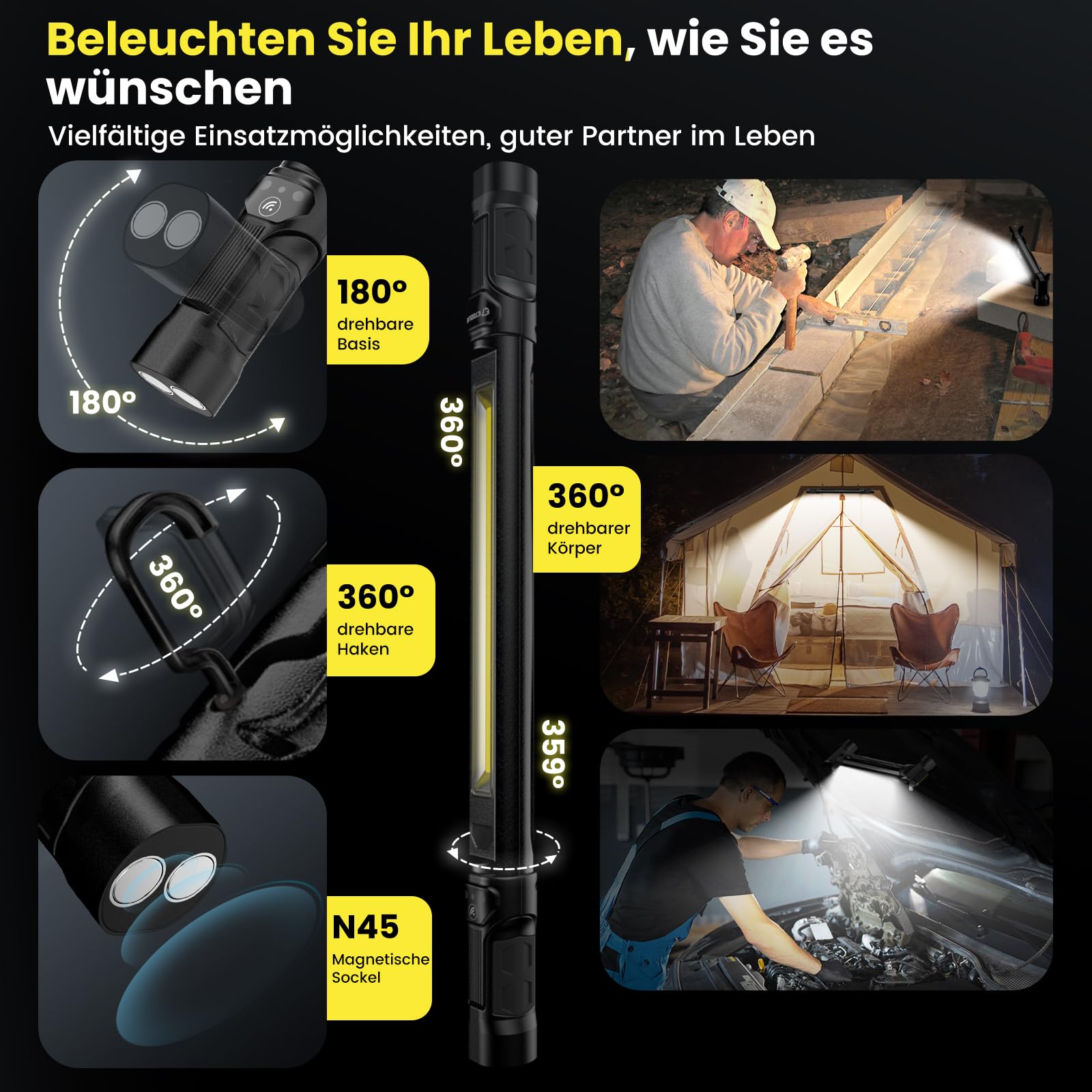 Brauchst du starkes Licht für Baustelle, Werkstatt oder Garten? Dieser LED Baustrahler von ETOOLAB hat 225W Power und bringt satte 30000 Lumen - das ist richtig hell! Das Dreifach-Leuchtendesign sorgt für schattenfreie Ausleuchtung von bis zu 150m². Das robuste Stativ ist höhenverstellbar von 98cm bis 200cm - perfekt für jeden Einsatzzweck. Mit IP66 Schutz ist er staub- und wasserdicht, hält also auch mal einem Regenschauer stand. Die 360° Schwenkfunktion ermöglicht optimale Lichtausrichtung. Das 5m lange Kabel gibt dir genug Bewegungsfreiheit. Ob bei Renovierungen, Gartenpartys oder Handwerksarbeiten - dieser Strahler macht die Nacht zum Tag. Mit 5,1kg Gewicht und orangefarbenem Design ist er ein echter Profi-Helfer. Inklusive 1 Jahr Garantie - da kannst du beruhigt zugreifen!
