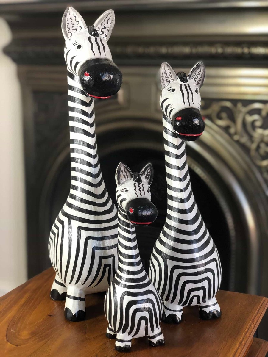 Wow, diese Zebra-Statue ist einfach der Hammer! Ganze 100 cm hoch - ein richtiger Hingucker in jedem Raum. Aus massivem Holz handgeschnitzt und liebevoll bemalt, mit echter Kokosfaser-Mähne. Sieht aus wie direkt aus der afrikanischen Savanne! Perfekt für den Boden oder ein sideboard - verleiht sofort einen ethnischen, exotischen Flair. Maße: 100x20x11,5 cm - also schlank genug für auch kleinere Ecken. Jedes Stück ist ein Unikat, fair und in Handarbeit gefertigt. Ob im Wohnzimmer, Flur oder Büro - dieses Zebra macht einfach was her! Einfach aufstellen und schon fühlst du dich wie auf Safari. Ein total besonderes Deko-Stück für alle, die was Einzigartiges suchen!