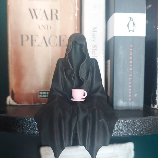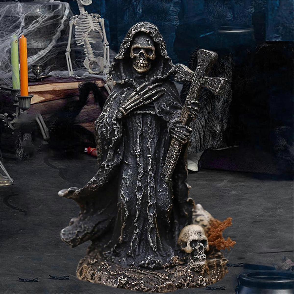 Suchst du nach was richtig Gruseligem für Halloween oder deine Gothic-Deko? Diese Sensenmann Statue mit schwebender Fledermaus-Kristallkugel ist der absolute Hammer! Wenn du das Licht einschaltest, tanzen die Fledermäuse in der Kugel und erzeugen eine total unheimliche, geisterhafte Atmosphäre - perfekt für Spukhäuser oder Gruselpartys! Die verhüllte Figur hat nur eine schattenhafte Silhouette ohne Gesicht, was sie noch geheimnisvoller wirken lässt. Aus hochwertigem Harz gefertigt, ist sie robust und detailreich verarbeitet. Ob im Bücherregal, auf dem Schreibtisch, Nachttisch oder Altar - diese Statue macht überall was her! Sie passt super in Halloween-Arrangements, aber auch als ganzjährige Deko für alle, die den Gothic-Lieben. Deine Gäute werden definitiv nachfragen, wo du das tolle Stück her hast! Mit 5,9 Zoll (ca. 15 cm) ist sie genau die richtige Größe, um Aufmerksamkeit zu erregen, ohne zu dominant zu wirken. Einfach hinstellen, Licht an - und schon hast du die perfekte gruselige Atmosphäre!