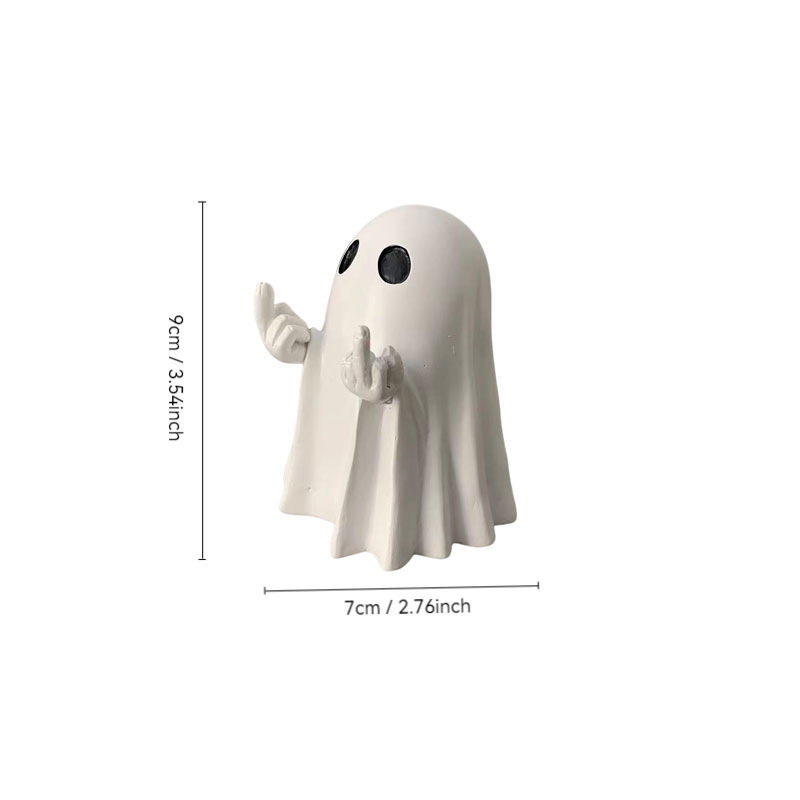 Boah, diese Geister-Statue ist ja mal der absolute Hingucker für deine Halloween-Party! Der kleine Geist mit seinem frechen Mittelfinger bringt jeden zum Lachen und sorgt für richtig gute Stimmung. Aus robustem Harz gefertigt, hält das Teil was aus - ob drinnen auf dem Schreibtisch, Regal oder Nachttisch, oder draußen im Garten oder auf der Terrasse.\\n\\nDas 'Cowboy Looking Ghost'-Design ist einfach niedlich und gruselig zugleich, genau die richtige Mischung für Halloween. Die Statue fängt die typische Halloween-Atmosphäre perfekt ein und wird garantiert zum Gesprächsthema auf deiner Party.\\n\\nEgal ob du dein Zuhause schaurig-schön dekorieren willst oder ein besonderes Highlight für deine Halloween-Feier suchst - dieser kleine Geist macht einfach eine gute Figur. Die Qualität ist top, das Harz-Material ist langlebig und witterungsbeständig, sodass du Jahre lang Freude an dieser Deko hast.\\n\\nPerfekt für alle, die es etwas anders mögen - nicht nur gruselig, sondern auch mit einem Augenzwinkern. Einfach hinstellen und sich über die Reaktionen der Gäste freuen! Ob alleine oder in einer Gruppe mit anderen Halloween-Figuren - dieser Geist ist immer ein Blickfang.