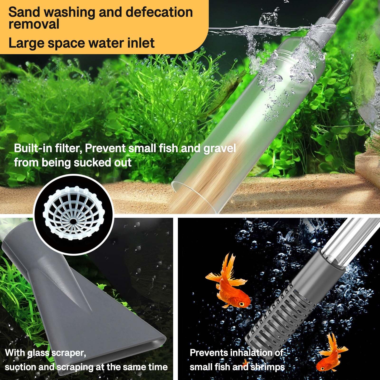 Hey Aquarien-Fans, dieser Uhngw Reiniger macht die Beckenpflege zum Kinderspiel! Mit 2,1 Metern Schlauchlänge kommst du auch an die hintersten Ecken deines Aquariums. Ohne Strom oder kompliziertes Zubehör - einfach den Siphon-Effekt nutzen und schon geht's los! Aus umweltfreundlichem PP-Material, also absolut unbedenklich für deine Fische. Perfekt für Anfänger - keine komplizierte Technik, einfach Handhabung! Das intelligente Ventilsystem ermöglicht eine super Wasserregulation - kein zu viel oder zu wenig absaugen! Mit Sandfilter-Funktion, also entfernst du gleichzeitig Schmutz und reinigst den Boden. Nur 80 Gramm leicht, also super handlich und einfach zu lagern! Perfekt für Goldfische, Guppys, Schildkröten - aber auch für Gartenteiche oder Reptilienbecken! Die rutschfeste Oberfläche gibt dir sicheren Halt, auch mit nassen Händen. Einfach in der Anwendung, aber extrem effektiv - dein Aquarium wird's dir danken mit klarem Wasser und gesunden Fischen! Qualität, die überzeugt, und ein System, das einfach funktioniert. Mach dir die Aquarienpflege leichter mit diesem praktischen Helfer!