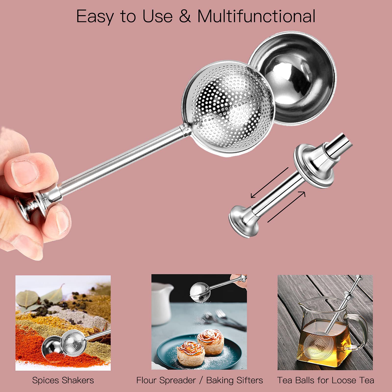 • Mehl-Staubwedel Edelstahl - Puderzucker Shaker Sieb Federgriff 2 Stück
