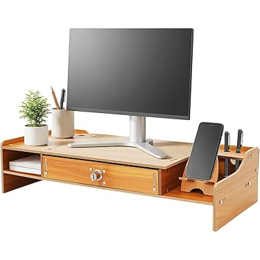 Endlich Ordnung auf dem Schreibtisch! Dieser elegante Monitorständer aus Bambus sieht nicht nur super aus, sondern ist auch mega praktisch. Das Schiebetür-Fach bietet Platz für Tastatur, Maus und Kleinkram - alles verschwindet ordentlich darunter. Maße: 64,4 x 26,4 x 14 cm. Besonders clever: Das integrierte Kabelmanagement sorgt für kabelloses Chaos. Und das Beste: Durch die ergonomische Höhe sitzt du gesünder und entlastest Nacken und Augen. Perfekt für Homeoffice oder Gaming-Setup! Bambus ist nicht nur stabil, sondern auch ein natürlicher Blickfang. Mach deinen Arbeitsplatz zum Wohlfühlort - stylisch und organisiert!