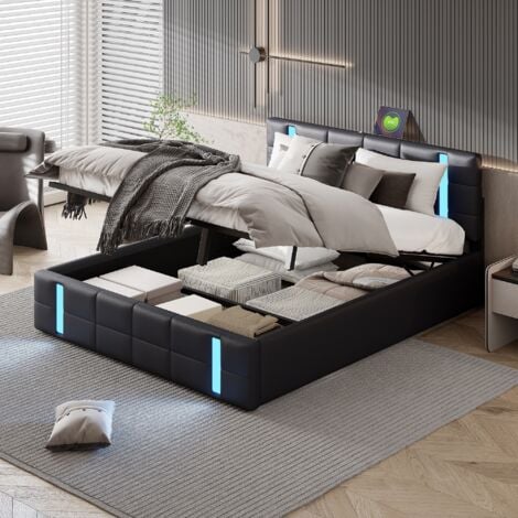 • Huayz Polsterbett 140x200 Mit Stauraum - LED Beleuchtung & USB Ladefunktion