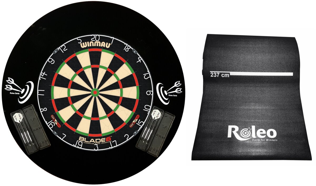 Dart-Spaß für die ganze Familie! Dieses komplette Set mit zweiseitiger Dartscheibe und 6 Steel-Dartpfeilen lässt keine Wünsche offen.\\n\\nDas Besondere: Die Scheibe hat zwei Spielseiten!\\n- Englische Ringeinteilung\\n- Deutsche Ringeinteilung\\n- Mit Drahtspinne für professionelles Spielgefühl\\n\\nIm Lieferumfang:\\n- 1 zweiseitige Dartscheibe\\n- 6 Steel-Dartpfeile aus Messing (16g)\\n- Integrierte Aufhängung\\n\\nPerfekt für Einsteiger und fortgeschrittene Spieler. Die papiergewickelte Scheibe bietet ein authentisches Spielerlebnis, während die hochwertigen Pfeile präzise Würfe ermöglichen.\\n\\nOb gemütlicher Spieleabend mit Freunden oder intensives Training - mit diesem Set kommt garantiert keine Langeweile auf. Auf die Plätze, fertig, Dart!