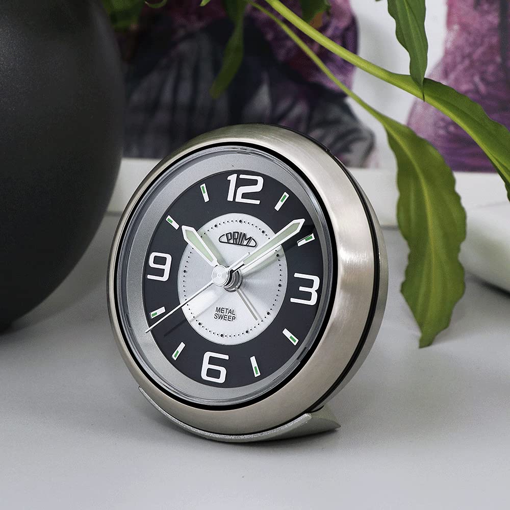 Dieser PRIM Steel Wecker ist nicht nur praktisch, sondern sieht auch noch mega stylisch aus! Mit seinem modernen Design in Silber/Blau passt er perfekt in jedes Schlafzimmer - ob modern, retro oder skandinavisch. Das analoge Zifferblatt mit arabischen Zahlen und leuchtenden Zeigern ist auch nachts gut ablesbar. Besonders praktisch: Die LED-Hintergrundbeleuchtung und das Nachtlicht helfen bei Dunkelheit. Der laute, aufsteigende Alarm weckt dich sanft, und mit der Snooze-Funktion kannst du nochmal kurz dösen. Das präzise Quarzwerk mit Sweep-Funktion läuft absolut geräuschlos - kein lästiges Ticken! Mit 96 mm Durchmesser und 49 mm Höhe hat er die perfekte Größe für den Nachttisch. Betrieben wird er mit einer AA-Batterie (nicht im Lieferumfang). Erhältlich in vier trendigen Farbkombinationen - da findet jeder seinen Favoriten. Mehr als nur ein Wecker - ein richtiges Deko-Highlight für dein Zimmer!