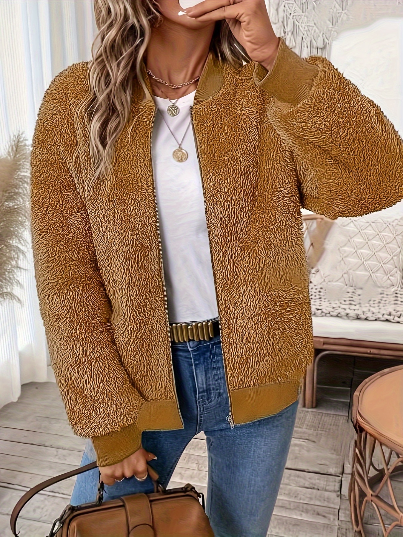 Diese Fleecejacke ist einfach der perfekte Begleiter für den Winter! Mit dem stylischen Stehkragen und dem praktischen Reißverschluss ziehst du sie im Nu an und aus. Die zwei Seitentaschen sind nicht nur für deine Hände super - da passt auch mal der Schlüssel oder das Handy rein. Der Regular Schnitt gibt dir volle Bewegungsfreiheit und passt zu allem - ob Jeans, Leggings oder Rock. Aus super weichem, flauschigem Fleece-Material, das dich den ganTag warm hält ohne dich zu schwitzen. Perfekt für die Freizeit, im Urlaub, beim Sport oder einfach für den Alltag. Mit hohen Stiefeln kombiniert sieht sie besonders cool aus. Pflege? Ganz easy - Handwäsche oder Maschine bei max. 31°C. Nicht bleichen, nicht bügeln, nicht in die Chemische Reinigung. Einfach eine Jacke, die sich gut anfühlt und gut aussieht - was will man mehr?