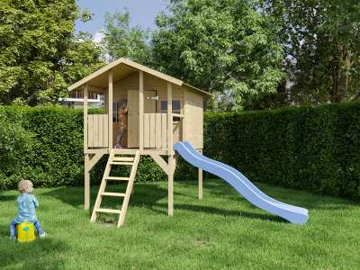 Das ist DAS Traum-Spielhaus für deine Kinder! Das Prestige Garden Stelzenhaus Funny XXL ist mit 286x178x303 cm richtig geräumig und bietet 11,34 m² Spielfläche. Die 150 cm Podesthöhe (kann optional verkürzt werden) ist über eine stabile Leiter erreichbar. Aus kesseldruckimprägniertem Kiefernholz gebaut - das hält jeder Witterung stand und ist super langlebig. Mit integriertem Sandkasten, großer Veranda und Balkon - hier können deine Kinder stundenlang spielen und ihre Fantasie ausleben. Die kindersichere Ausstattung mit Fingerklemmschutz an den Fenstern und stabilen Türen gibt dir ein sicheres Gefühl. Das praktische Steck- und Schraubsystem macht den Aufbau auch für Handwerks-Anfänger einfach. Für Kinder von 3-14 Jahren geeignet - aber Achtung: Nur unter Aufsicht von Erwachsenen nutzen! Perfekt für den Garten - und erweiterbar mit Rutsche oder Schaukel. Ein Spielhaus, das Jahre hält und deine Kinder garantiert begeistern wird!
