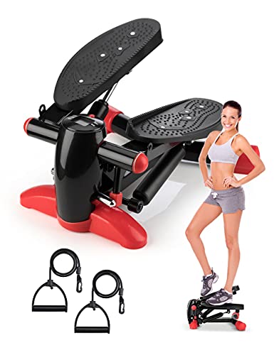 Total effektives Training für zu Hause - und das ohne viel Platz! Dieser Mini Stepper trainiert Beine, Po, Bauch UND Arme gleichzeitig. Mit den Widerstandsbändern wird's zum Ganzkörper-Workout.\\n\\nTechnische Daten:\\n- Tragkraft: 100kg\\n- Gewicht: 5,5kg\\n- Maße: 40x31x21,5cm\\n- Pedalgröße: 29x12cm\\n- Bänderlänge: 82-150cm\\n\\nFeatures:\\n- Verstellbare Intensität (8°-29°)\\n- LCD-Display für Zeit, Kalorien, etc.\\n- Rutschfeste Pedale\\n- Leise Hydraulikzylinder\\n- Zusammenklappbar\\n\\nSuper für kleine Wohnungen - nach dem Training einfach wegstellen. Und das Beste: So leise, dass du sogar trainieren kannst, während die Familie schläft!