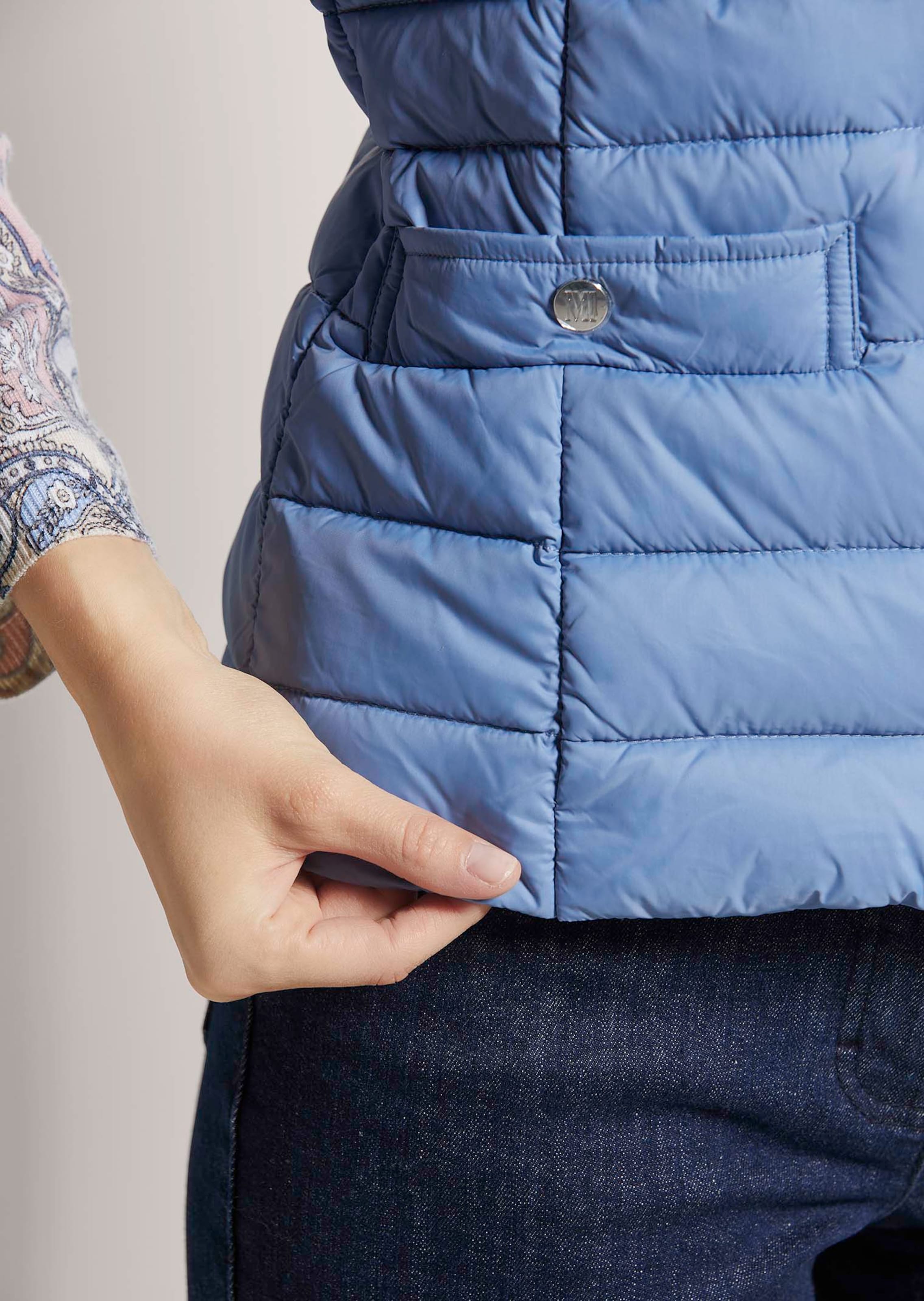 Perfekter Begleiter für kühle Tage! Diese wattierte Steppweste mit Kapuze von QS hält Sie warm, ohne einzuengen. Mit praktischen Taschen für Ihre Wertsachen und einem Reißverschluss für schnelles An- und Ausziehen. Der Gummizug am Saum sorgt für optimalen Sitz und hält die Kälte draußen. Die reguläre Passform ist bequem und lässt genug Platz für darunter liegende Kleidung. Die fixierte Kapuze schützt bei Wind und Wetter. Aus hochwertiger Webware mit Taftfutter gefertigt, ist diese Weste sowohl funktional als auch stylisch. Ob für den Spaziergang, die Stadt oder Outdoor-Aktivitäten - diese Weste ist Ihr vielseitiger Begleiter. In ärmelloser Ausführung haben Sie maximale Bewegungsfreiheit. Ein Must-have für alle, die auch bei kühleren Temperaturen nicht auf Komfort verzichten wollen!