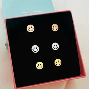 Smiley Ohrringe Sterling Silber 925 - Handgemachte Ohrstecker Mit Geschenkbox