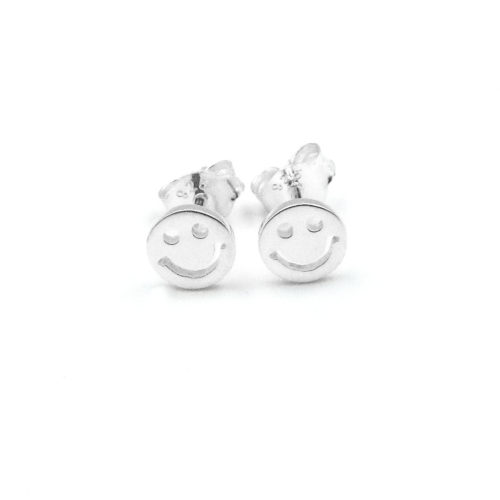 • Smiley Ohrringe Sterling Silber 925 - Handgemachte Ohrstecker Mit Geschenkbox