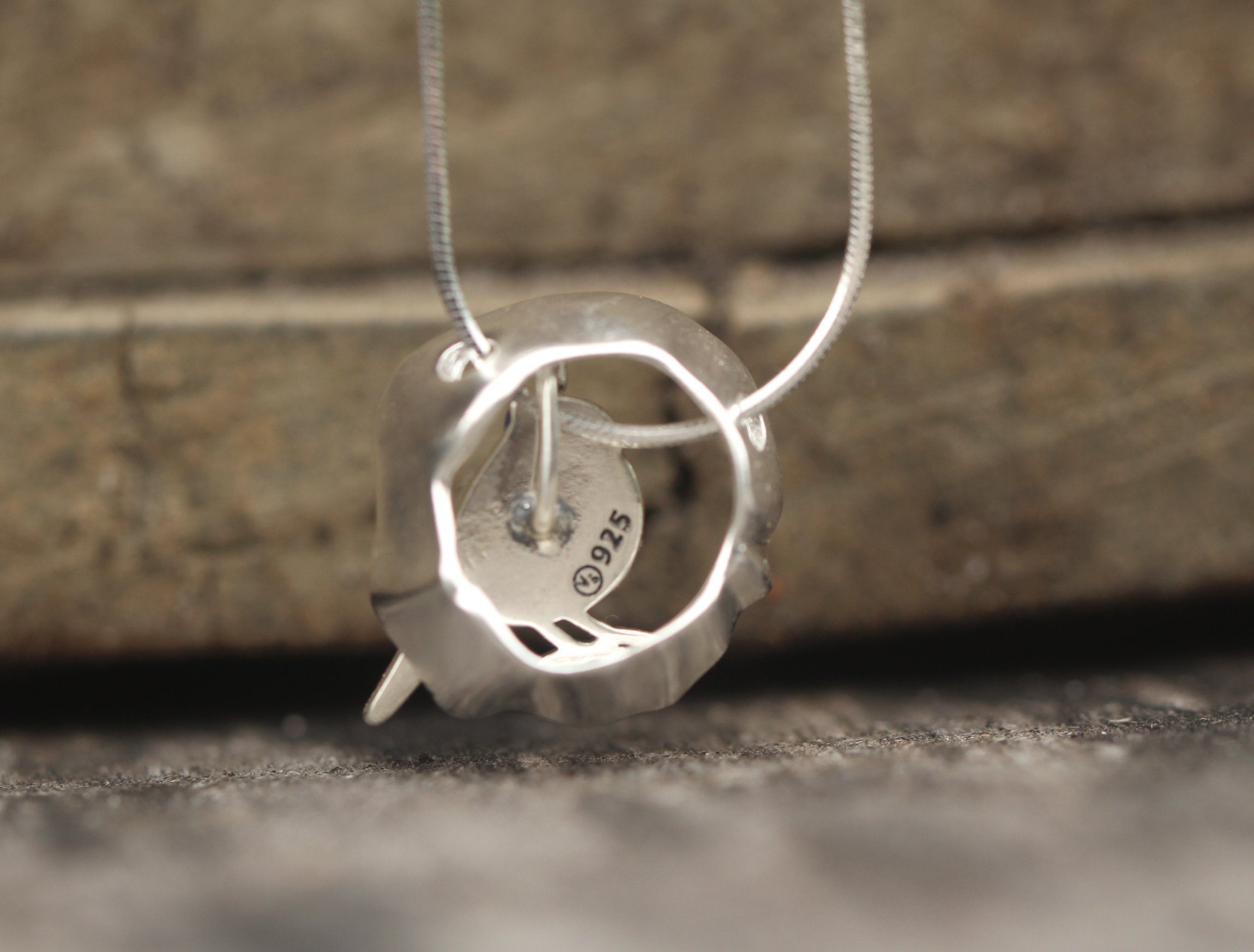 3D Rotkehlchen Kette Aus 925 Sterling Silber - Handbemalt Mit Orangener Emaille