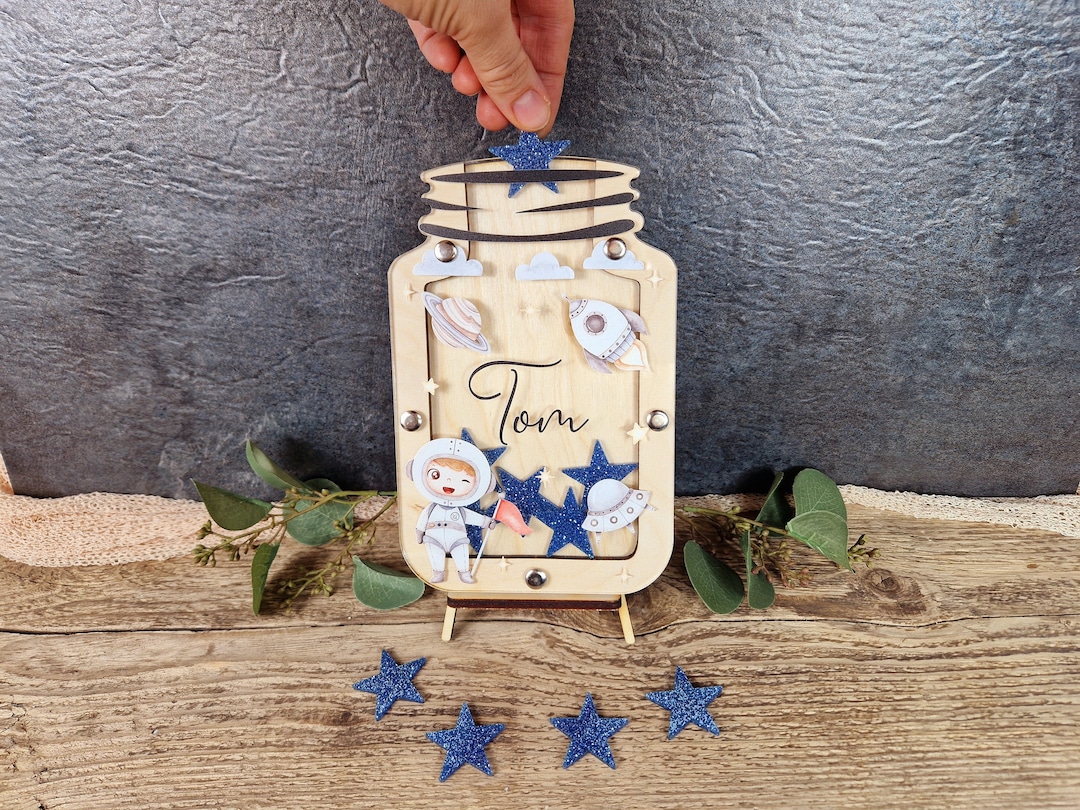 Total süßes Belohnungssystem für Kinder! Dieses Holzglas mit den 25 Sternen macht aus langweiligen Aufgaben ein spaßiges Spiel. Ob zu Hause, im Kindergarten oder in der Schule - damit motivierst du Kinder spielerisch zu positivem Verhalten. Die Kleinen sammeln Sterne für erledigte Aufgaben oder gutes Benehmen und sehen ihren Erfolg ganz direkt! Das Glas ist aus robustem Holz und Acryl, also absolut kindersicher mit abgerundeten Ecken. Perfekt für tägliche Routinen wie Zähneputzen, Hausaufgaben oder Aufräumen. Stärkt das Selbstvertrauen und fördert eigenverantwortliches Handeln. Einfach die Sterne ins Glas werfen und sich über die Fortschritte freuen! Das Set gibt's in zwei Größen: 15x25cm oder 14x21cm - beide mit allem Zubehör. Ein super Tool für Eltern und Lehrer, um Kinder positiv zu bestärken!