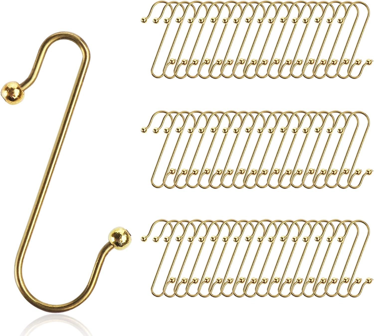 Diese 60 goldenen Christbaumkugel-Aufhänger machen deinen Weihnachtsbaum perfekt! In Stern-S-Form, je ca. 50x25mm groß. Aus Metall mit goldener Beschichtung - rostfrei und mehrfach verwendbar. Der spezielle Stern-Design verhindert, dass die Kugeln herunterfallen. Super einfach zu handhaben - einfach durchziehen und aufhängen. Unsichtbar in deinem Baum, damit die Dekoration im Vordergrund steht. Nicht nur für Weihnachten, sondern auch für Ostern, Halloween und andere Feste geeignet. Spart Zeit beim Schmücken und Aufräumen. Ein Must-Have für jede Weihnachtsdeko!