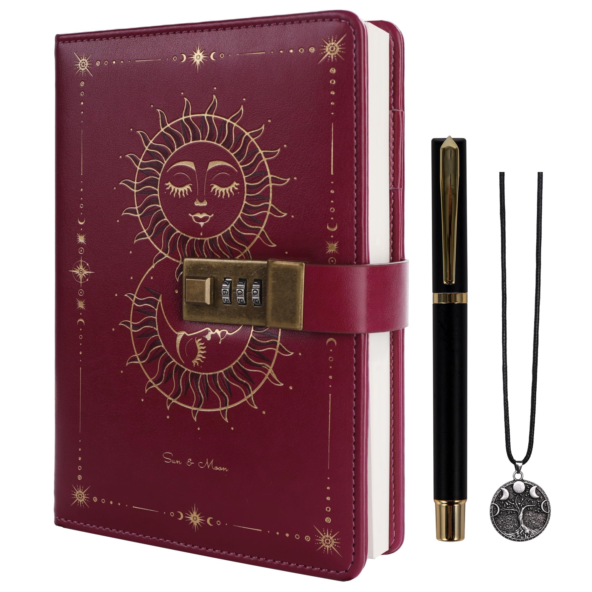 Suchst du ein sicheres Tagebuch für deine geheimsten Gedanken? Dieses wunderschöne Ledertagebuch mit Zahlenschloss ist perfekt dafür! Das edle Leder fühlt sich toll an und das Sternbild-Design mit Sonne, Mond und Sternen verleiht ihm einen magischen Touch. Mit 112 Seiten liniertem, nachfüllbarem Papier (100 g/m² - richtig hochwertig!) hast du genug Platz für deine Gedanken, Träume und Erinnerungen. Der 3-stellige Code-Schloss mit tausenden Kombinationen hält neugierige Blicke fern - vergiss nur das Passwort nicht! Das praktische B6-Format (8x14 cm) passt in jede Tasche, ob für unterwegs, Reisen oder einfach neben dem Bett. Kommt mit Anleitung und ist das ideale Geschenk für kreative Menschen, die ihre Privatsphäre schätzen. Deine Gedanken verdienen einen besonderen Platz - hier finden sie ihn!