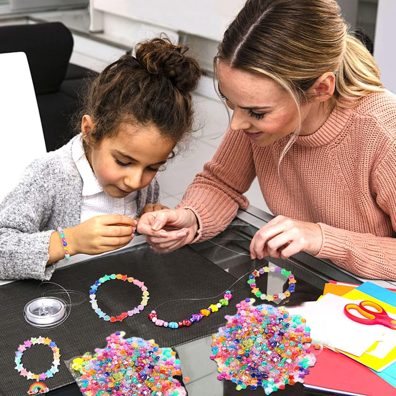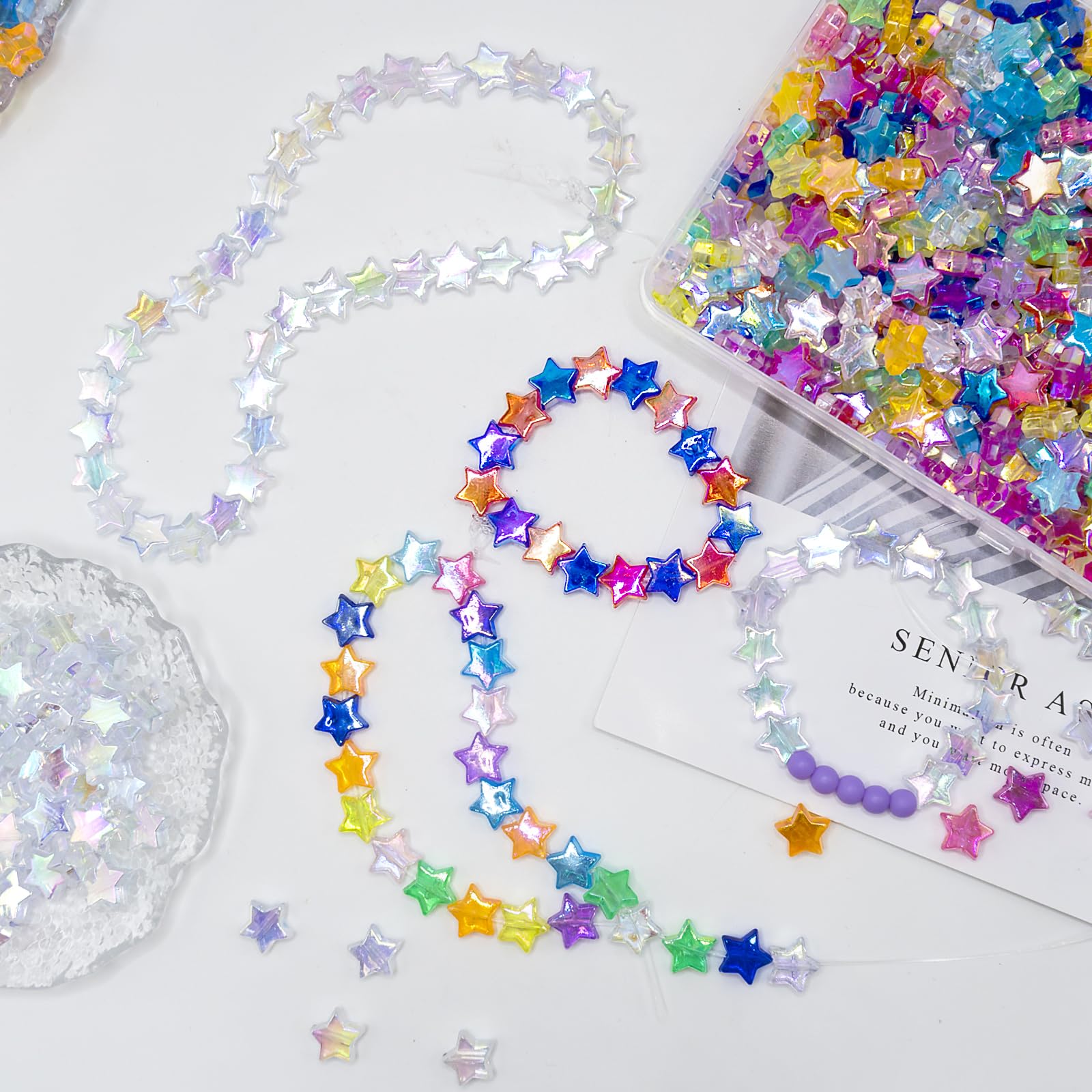 Wow, was für ein riesiges Perlen-Set! Hier bekommst du ganze 600 Acryl-Perlen in drei verschiedenen Formen: 200 Sterne (1,1x1,1x0,4cm), 200 Herzen (0,9x0,8x0,4cm) und 200 runde Perlen (0,6x0,6x0,6cm). Die bunten Perlen glitzern richtig schön dank ihrer speziellen Beschichtung und sehen aus wie kleine Edelsteine. Perfekt um coole Armbänder, Halsketten oder Ohrringe zu basteln. Du kannst aber auch Haarnadeln, Schlüsselanhänger oder Handyketten damit verzieren. Die Oberfläche ist total glatt und gratfrei, also nichts piekst oder kratzt. Super für Erwachsene und Jugendliche, die gerne kreativ sind. Das ganze Set kommt in einem praktischen Beutel und wiegt nur 111 Gramm - ideal zum Mitnehmen. Ob als Geschenk oder für dich selbst: Damit kannst du stundenlang basteln und deine eigenen, einzigartigen Schmuckstücke kreieren!