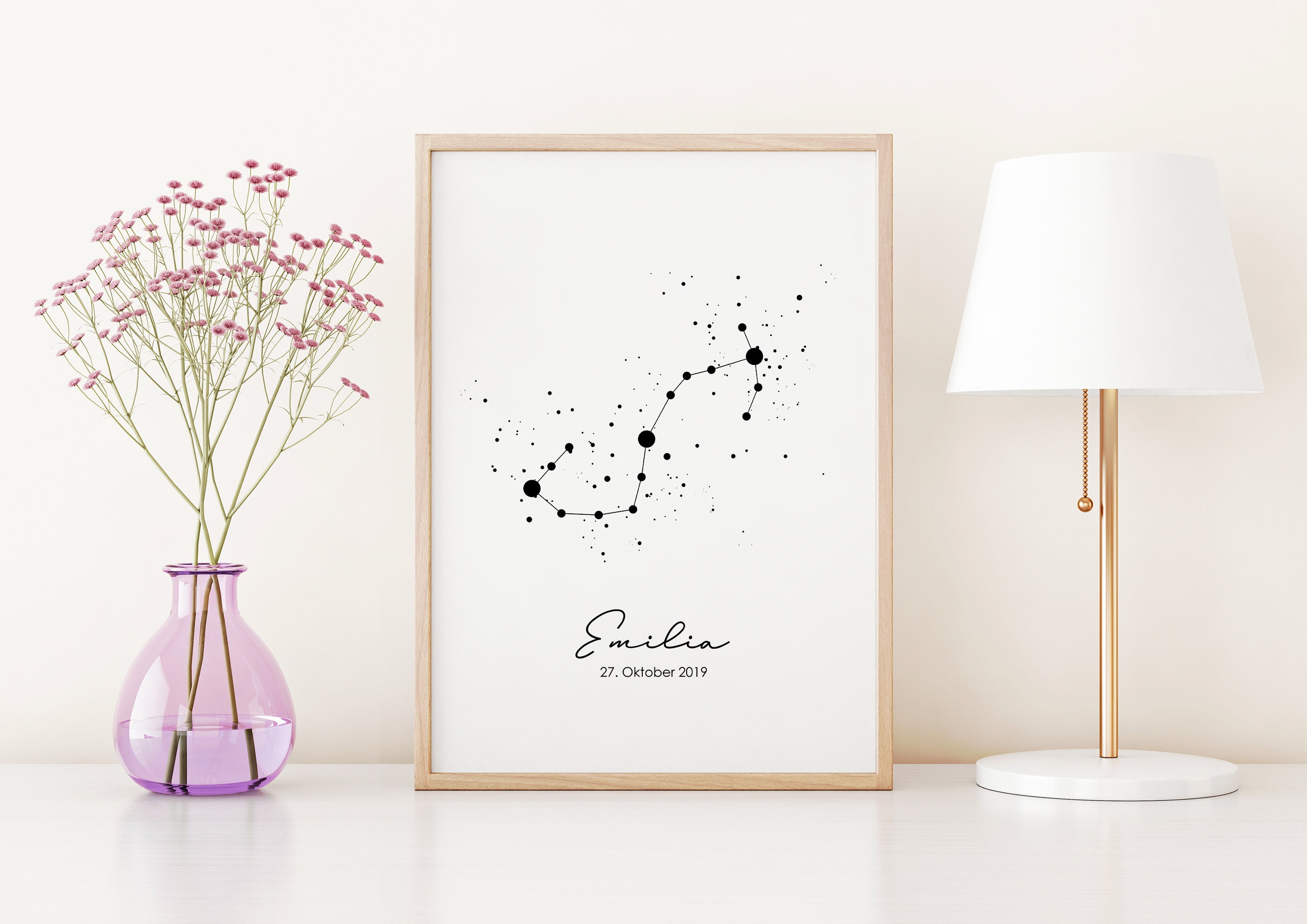 Was für eine süße Idee! Dieses personalisierte Sternzeichen-Poster ist das perfekte Geschenk zur Geburt oder Taufe. Mit Name, Geburtsdatum, Gewicht, Größe und Uhrzeit - alles was zählt!