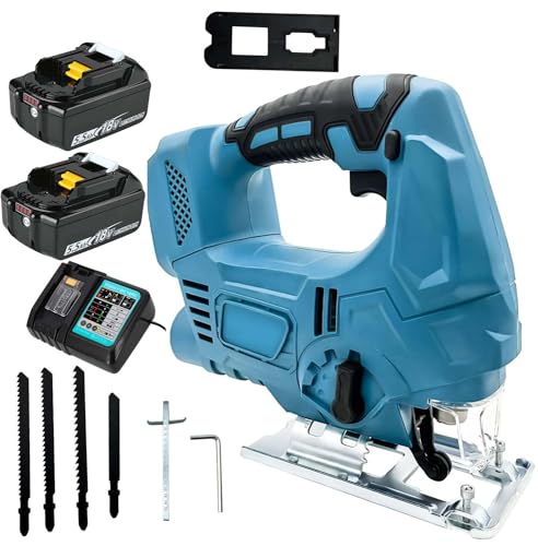 Power für deine Werkstatt! Diese bürstenlose Stichsäge ist ein echtes Arbeitstier. Kompatibel mit Makita 18-21V Akkus - kabellose Freiheit pur! Bis zu 2600 Hübe pro Minute für saubere, schnelle Schnitte. Verstellbare Fußplatte für 45° Schrägschnitte - vielseitig einsetzbar. 3 Orbital-Einstellungen für unterschiedliche Materialien. Mit LED-Arbeitslicht für beste Sicht auch in dunklen Ecken. Im Set: 9 Sägeblätter für Holz, Metall und Kunststoff. Maximale Schnitttiefe: 135mm (Holz), 20mm (Aluminium), 10mm (Stahl). Sicherheitsverriegelung verhindert unbeabsichtigtes Starten. Perfekt für Heimwerker und Profis - präzise und ausdauernd. Macht jeden Zuschnitt zum Kinderspiel! Ein kraftvolles Werkzeug das sich sehen lassen kann.