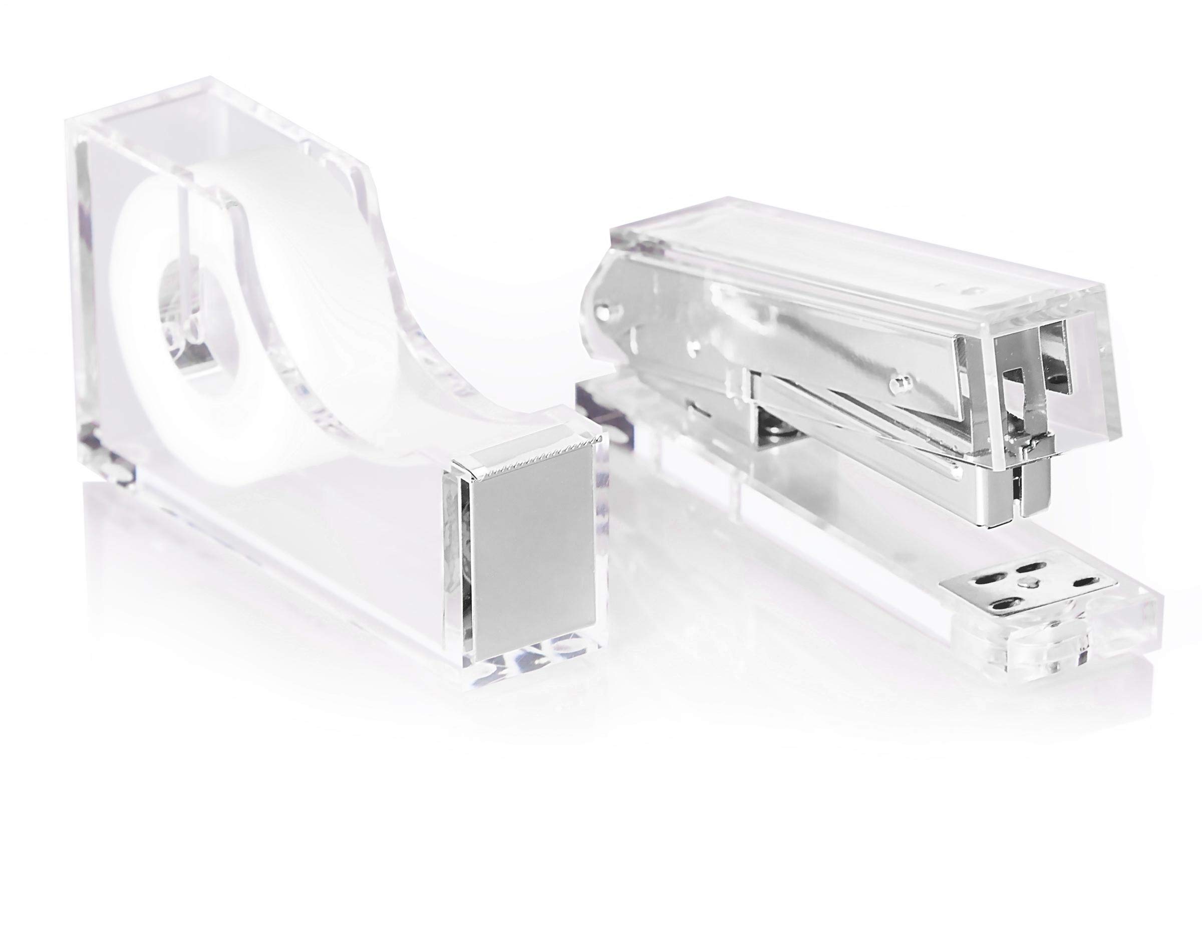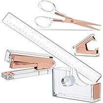 Dieses edle Schreibtisch-Set von Staple & Stick macht jeden Arbeitsplatz zum Hingucker! In elegantem Gold und klarem Acryl sieht es einfach klasse aus - ob im Homeoffice, im Büro oder auf dem Schüler-Schreibtisch. Das Set enthält eine 16,5 cm Schere die super schneidet, einen Klammerentferner der Heftklammern rückstandslos entfernt und ein 30,5 cm Lineal mit klaren Markierungen. Alles aus hochwertigem Lucite-Acryl gefertigt - stabil, kratzfest und langlebig. Die goldenen Metall-Elemente verleihen dem ganzen einen luxuriösen Touch. Perfekt als Geschenk für Kollegen, zur Beförderung oder für Studenten zum Studienbeginn. Oder einfach mal sich selbst gönnen - denn wer verbringt nicht viel Zeit am Schreibtisch? Das Set ist kompakt genug für die Schublade, aber schön genug um es ständig auf dem Tisch zu haben. Macht einfach Freude, mit so schönem Zubehör zu arbeiten - da gehen selbst lästige Büroarbeiten gleich viel leichter von der Hand!