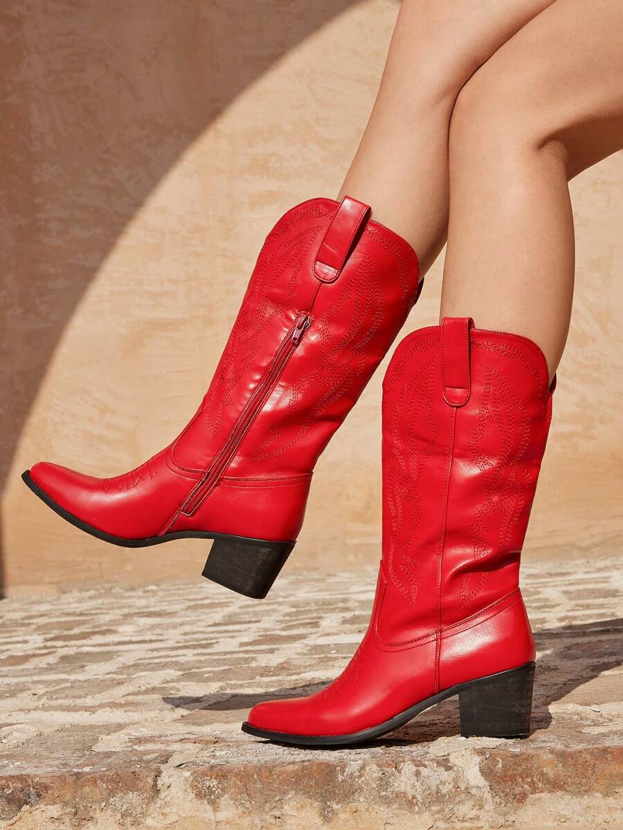 Yeehaw! Diese Cowboystiefel bringen Western-Flair in deine Garderobe. Die Mid-Calf Stiefeletten im Cowgirl-Style sehen einfach umwerfend aus - mit schicker Stickerei und spitzer Zehe. Einfach reinschlüpfen und losgehen - kein Schnüren oder Knöpfen! Der 3-5cm Keilabsatz gibt dir extra Höhe, ohne unbequem zu sein. Aus weichem PU-Material, gefüttert mit Mesh für angenehmes Fußklima. Die Gummisohle gibt guten Halt und die Stoffeinlage sorgt für Tragekomfort. Wichtig: Vor dem Kauf deine Fußlänge messen und unsere Größentabelle checken! Bei breiteren Füßen lieber eine Größe größer nehmen. Diese Stiefel passen super zu Jeans, Kleidern oder Röcken - total vielseitig! Ob für den Alltag, für Partys oder wenn du einfach mal was Anderes anziehen willst - mit diesen Stiefeln machst du immer eine gute Figur. Sie sind robust genug für tägliches Tragen, aber sehen dabei so gut aus, dass du sie bestimmt oft anziehen wirst. Western-Style mal modern interpretiert - einfach klasse!