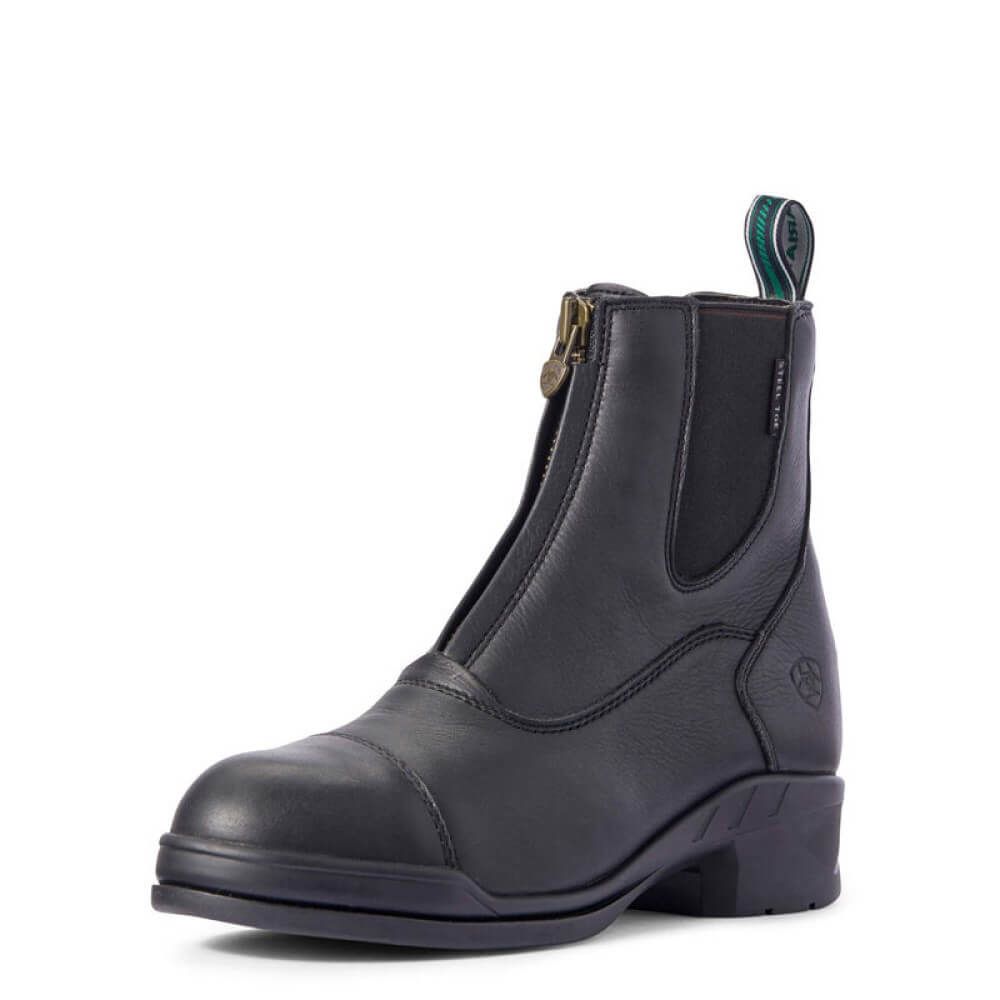 Style und Komfort vereint! Diese eleganten Paddock Stiefel von ARIAT kombinieren klassisches Design mit modernster Technologie. Hergestellt aus hochwertigem Vollnarbenleder das mit der Zeit schöner wird. Der seitliche YKK-Reißverschluss in antikem Messing-Look macht das An- und Ausziehen zum Kinderspiel. Die fortschrittliche 4LR-Technologie bietet optimale Dämpfung und Unterstützung für ganztägigen Tragekomfort. Das atmungsaktive Futter leitet Feuchtigkeit ab und hält deine Füße trocken. Der gepolsterte Kragen sorgt für weichen Komfort am Schaft. Perfekt für Reiten, aber auch ein stylischer Alltagsstiefel für jeden Anlass. Die runde Zehenform bietet ausreichend Platz für deine Füße. Ein zeitloser Klassiker der in keiner Garderobe fehlen sollte! Egal ob im Stall, im Büro oder in der Stadt - diese Stiefel machen immer eine gute Figur!