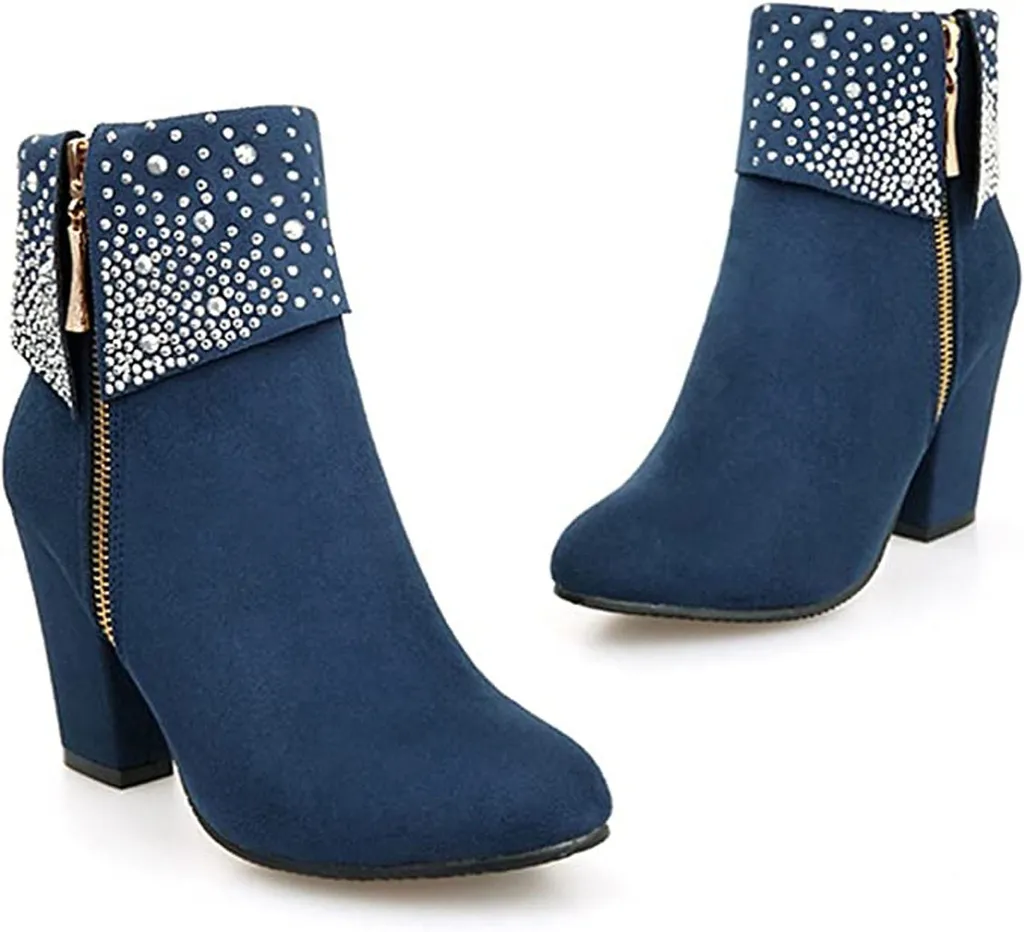 Mädels, diese Stiefeletten sind ja mal richtig im Trend! Der klobige Absatz (8cm!) gibt dir Höhe ohne dass du dich fühlst wie auf Stelzen. Und die coolen Nieten machen aus den Schuhen direkt ein Statement-Piece für jeden Outfit.