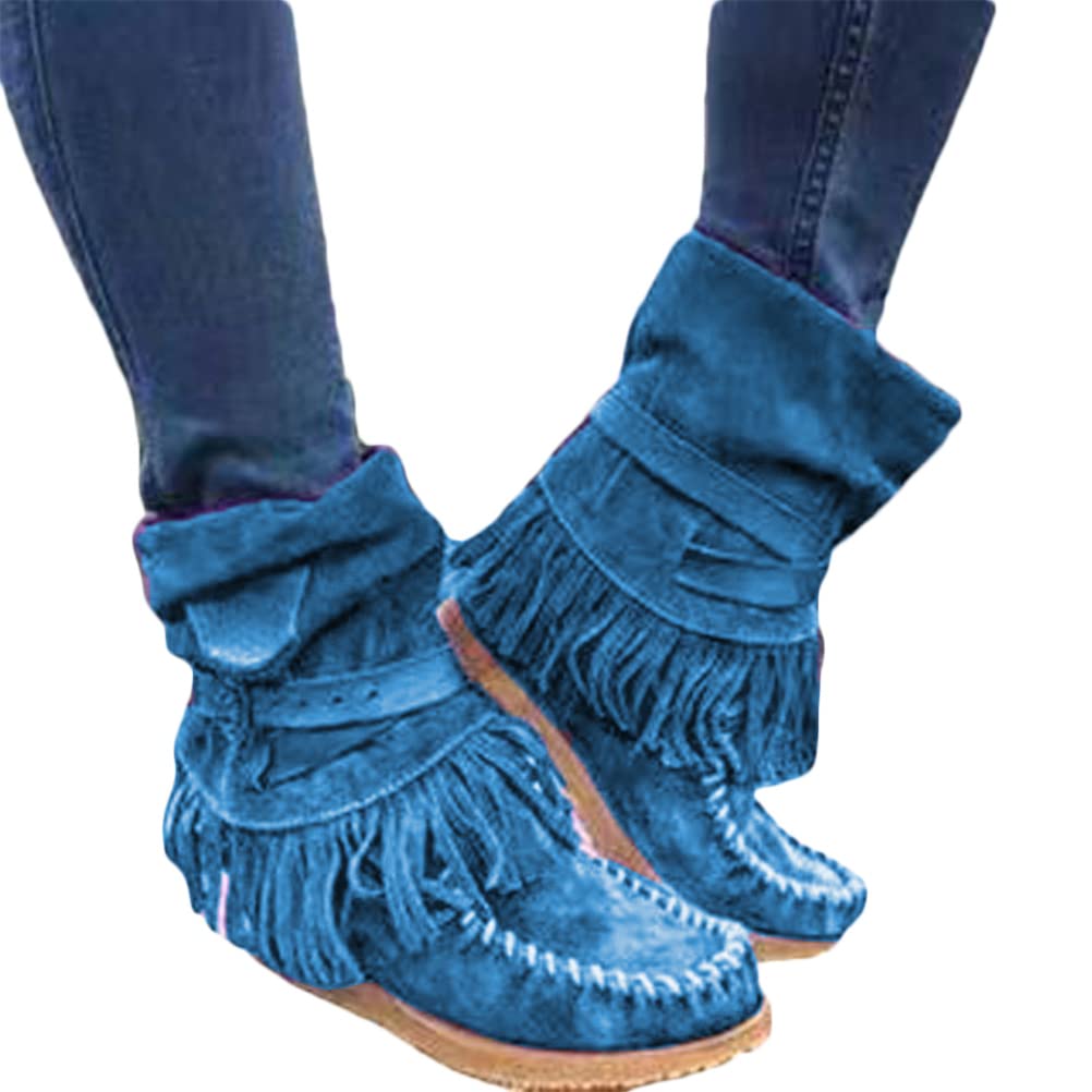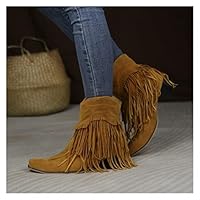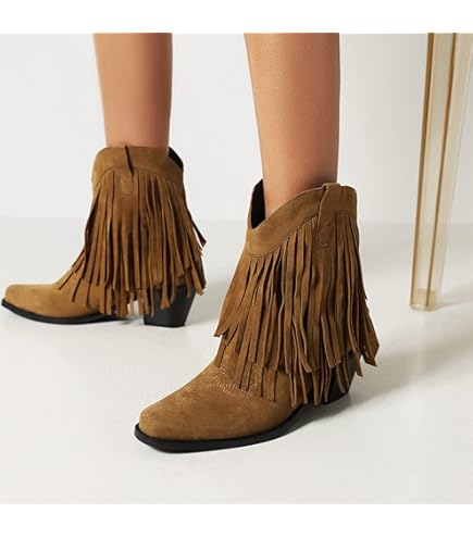 Yeehaw! Diese trendigen Western-Stiefeletten bringen den Cowboy-Chic direkt in deinen Kleiderschrank. Aus weichem Wildleder gefertigt, sind sie super bequem und sehen dabei einfach klasse aus. Die dekorativen Fransen und Nieten verleihen dem Schuh seinen authentischen Western-Look, während der seitliche Reißverschluss das An- und Ausziehen zum Kinderspiel macht. Die runde Zehe gibt deinen Füßen genug Platz, und die flache Sohle aus rutschfestem Gummi sorgt für sicheren Halt. Perfekt für Herbst und Winter, aber auch im Frühling eine tolle Wahl. Kombiniere die Stiefeletten mit Jeans für einen lässigen Look, mit Kleidern für einen boho-chic Style oder mit Röcken für einen individuellen Auftritt. Ob auf dem Festival, in der Stadt oder beim gemütlichen Abend mit Freunden - mit diesen Stiefeletten machst du immer eine gute Figur. Ein echter Allrounder, der zu vielen Anlässen passt und deinem Outfit sofort eine besondere Note verleiht!