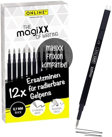 Super praktisch: 24 löschbare Minen für deine Frixion-Stifte! Mit 0,5mm Stärke und blauer Tinte schreiben sie sich butterweich und lassen sich rückstandsfrei korrigieren - perfekt für Notizen, Hausaufgaben oder Büroarbeit. Die 11cm langen Minen passen in die meisten radierbaren Gelstifte (kompatibel mit Pilot Frixion). Du sparst Geld und Müll, weil du nicht immer neue Stifte kaufen musst. Jede Mine hält bis zu 300 Meter Schreibstrecke! Einfach die alte Mine raus, neue rein - fertig. Ideal für Schüler, Studenten und alle, die gerne ordentlich schreiben. Achtung: Nicht in der prallen Sonne liegen lassen, sonst verblasst die Tinte!