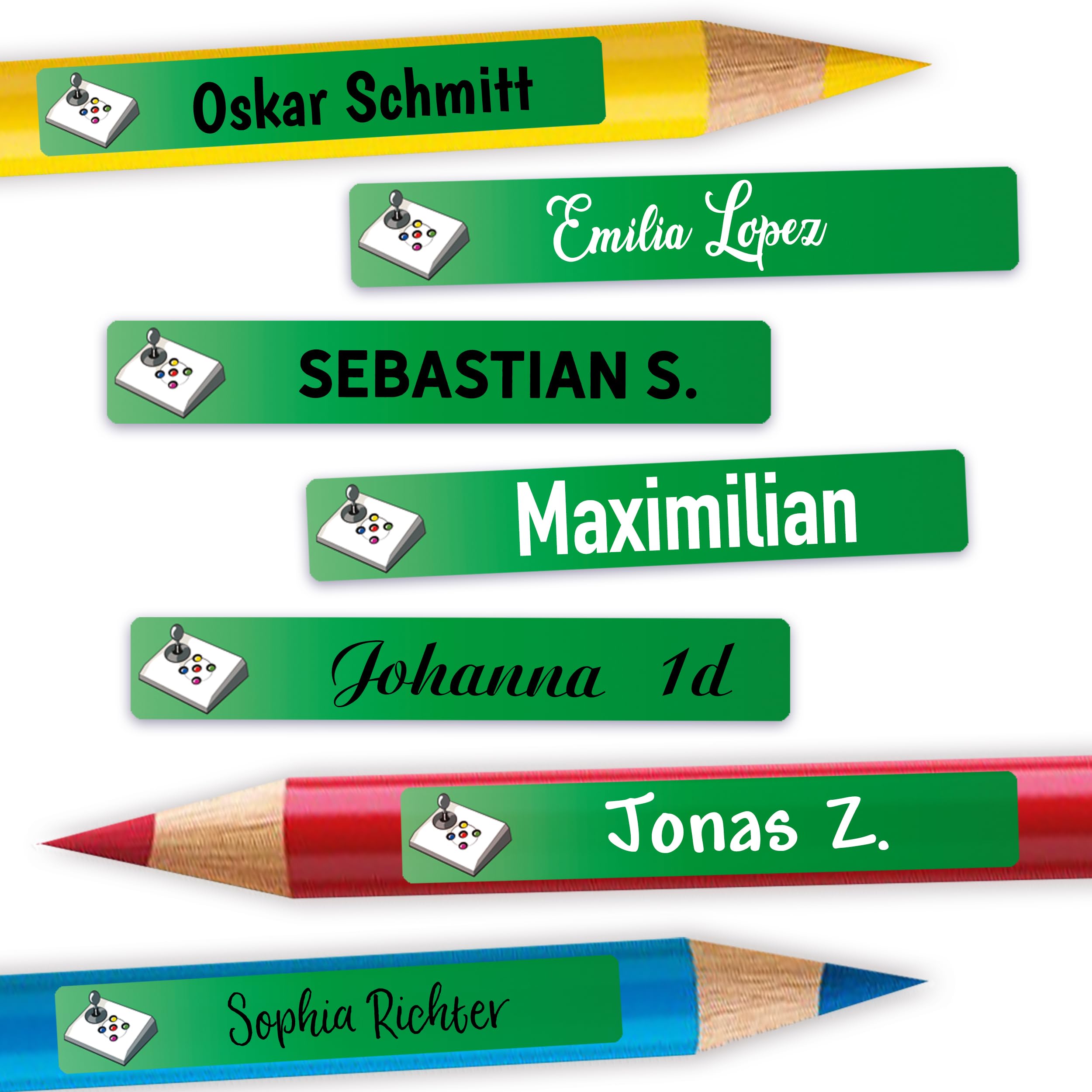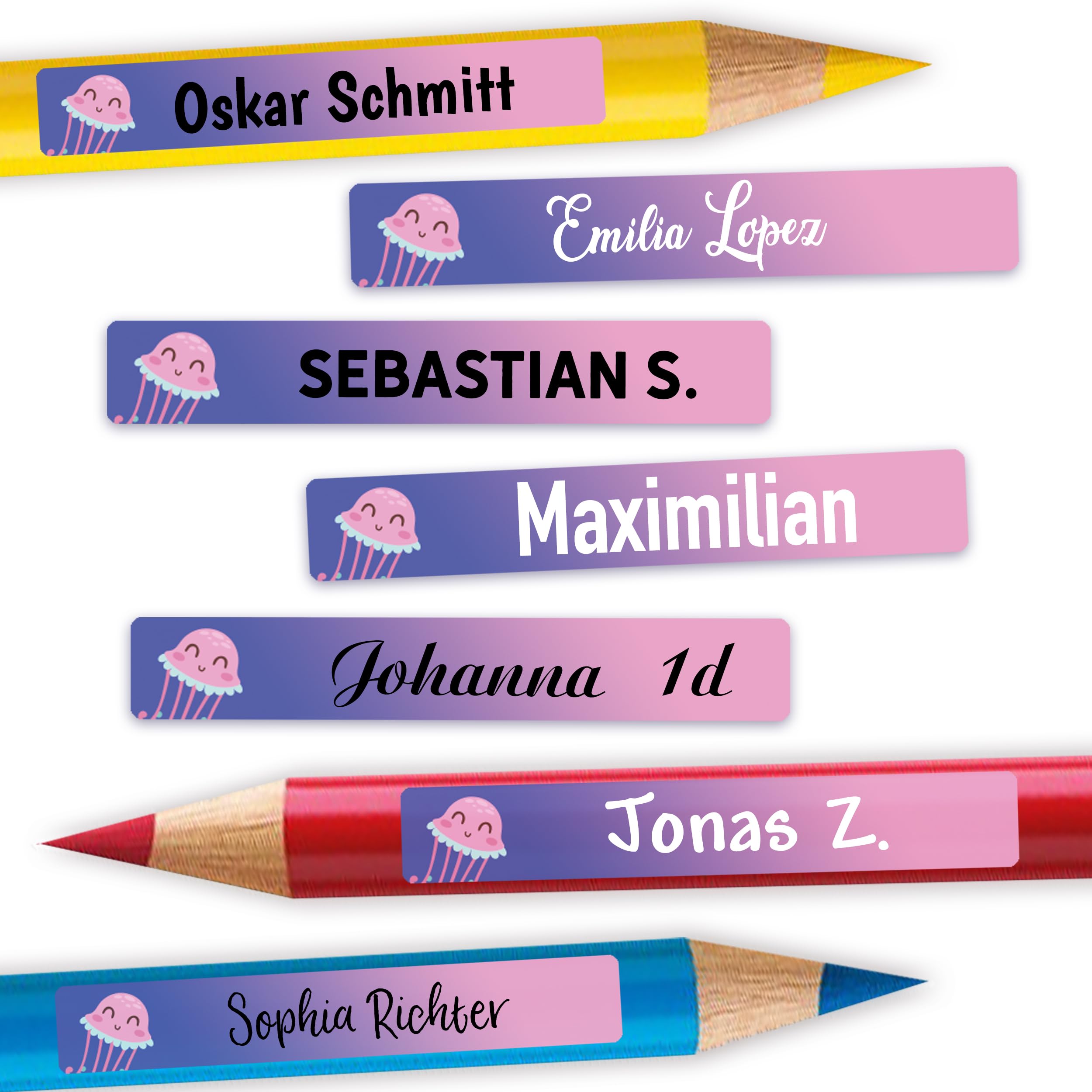 Nie wieder verlorene Stifte! Diese 72 personalisierbaren Namensaufkleber (49x7,5mm) passen perfekt auf Stifte, Lineale und Schulhefte. Aus wasserfestem Vinyl - spülmaschinengeeignet und extrem robust. Einfach zu gestalten mit verschiedenen Motiven und Farben. Perfekt für Schulanfang, Kita oder Kindergarten. Haftet sicher auf Plastik, Metall und glatten Oberflächen. Hergestellt in Deutschland mit hoher Qualität. Bring Ordnung in die Schulsachen deines Kindes!
