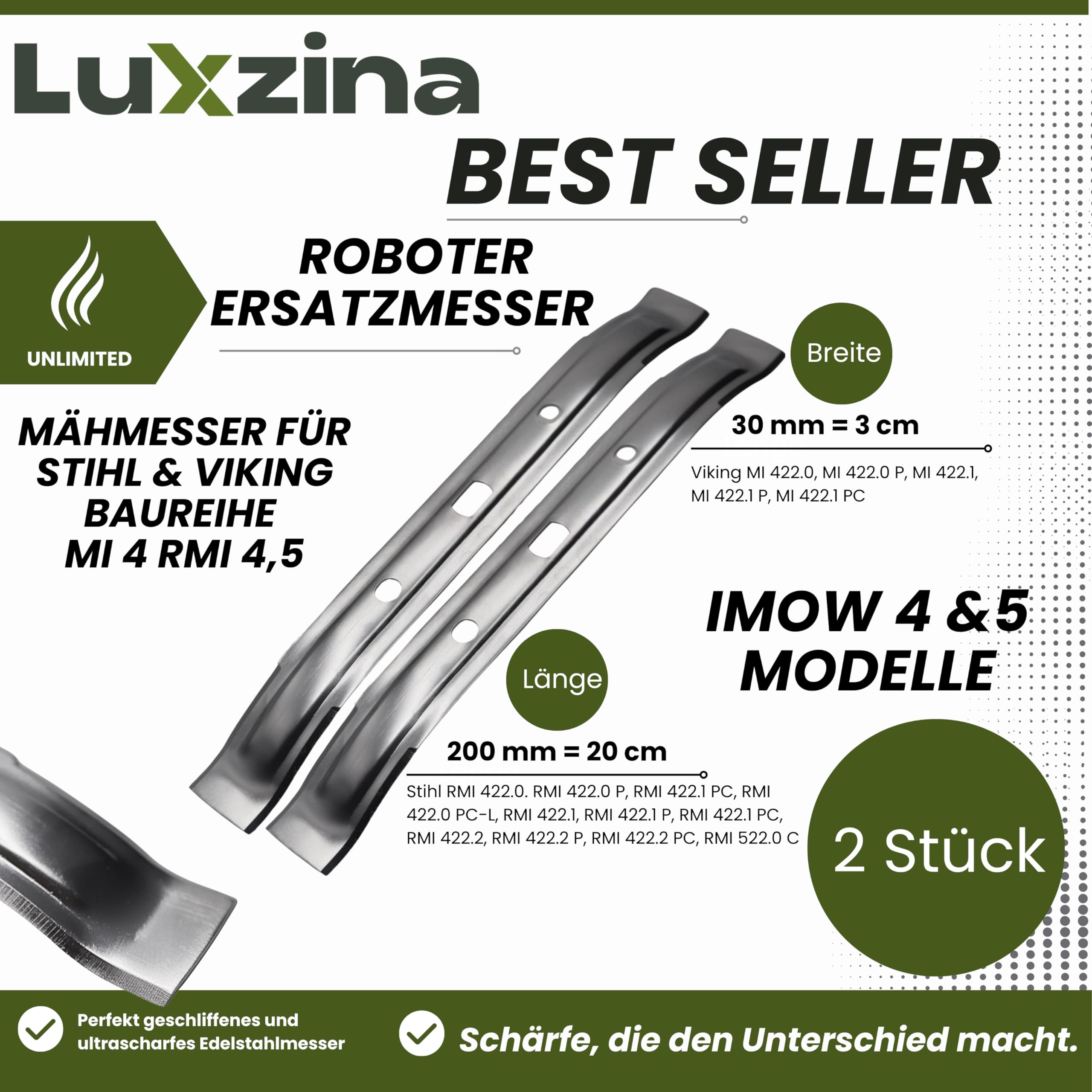 Perfekte Ersatzmesser für deinen Stihl oder Viking Mähroboter! Diese 20 cm langen Klingen passen genau für die Modelle RMI 422, RMI 522 und MI 422 aus den Serien 4 und 5. Hergestellt aus robustem Edelstahl für eine lange Lebensdauer und saubere Schnittergebnisse. Einfach die alten, abgenutzten Messer austauschen und dein Roboter mäht wieder wie neu. Das Set enthält 2 Messer - so hast du immer Ersatz parat. Kompatibel mit den Originalteilenummern 6301-702-0101 und 63017020101. Einfache Montage ohne Spezialwerkzeug. Perfekt für alle, die ihren Rasen immer perfekt gepflegt halten wollen. Die schwarze Beschichtung sorgt für zusätzlichen Korrosionsschutz. Ein Muss für jeden Mähroboter-Besitzer!