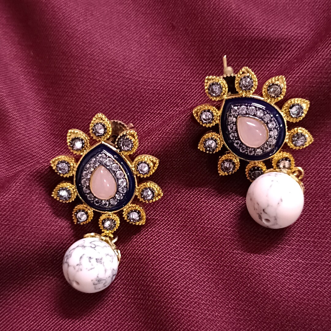 Ethnischer Charme für deine Ohren! Diese wunderschönen Jhumka Ohrringe im Retro-Design verleihen jedem Outfit eine besondere Note. Mit 4,5 cm Länge und 1,5 cm Durchmesser sind sie auffällig, aber nicht zu übertrieben. Aus hochwertiger Metalllegierung in verschiedenen Farben erhältlich: Schwarz, Weiß, Grün oder Blau. Perfekt für den Büroalltag genauso wie für festliche Anlässe oder einen stylischen Abendlook. Die bohemian Optik ist total im Trend und passt zu fast allem in deinem Kleiderschrank. Ein Paar reicht, um deinem Style sofort mehr Persönlichkeit zu verleihen. Ob für dich selbst oder als Geschenk - diese Ohrringe machen einfach eine gute Figur!