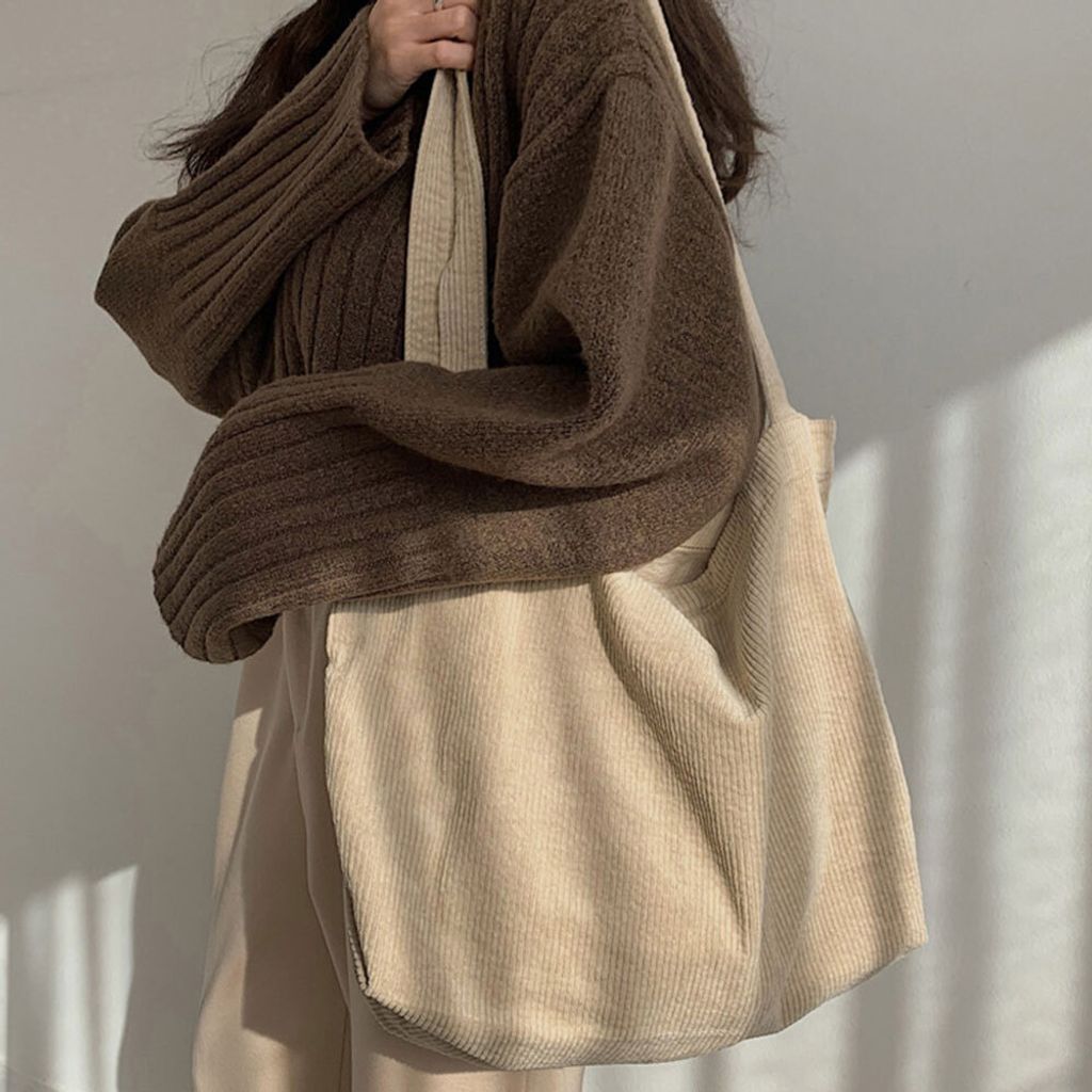 Diese Cord-Tasche ist einfach nur stylisch! Aus hochwertigem Kordsamt gefertigt, fühlt sie sich nicht nur super an, sondern sieht auch noch total trendy aus. Richtig geräumig ist sie obendrein - da passt alles rein, was du für unterwegs brauchst. Einkäufe, Laptop, Sportklamotten - kein Problem! Du kannst sie bequem in der Hand tragen oder über die Schulter hängen. Das Material ist richtig robust und hält auch bei täglicher Nutzung was aus. Perfekt für die Arbeit, Uni, Einkaufen oder einfach nur für einen Stadtbummel. Die Tasche hat diesen lässigen Look, der zu fast allem passt. Und das Beste: Sie ist nicht nur hübsch, sondern auch mega praktisch! Ein echter Allrounder für jeden Tag. So macht Tragen Spaß!