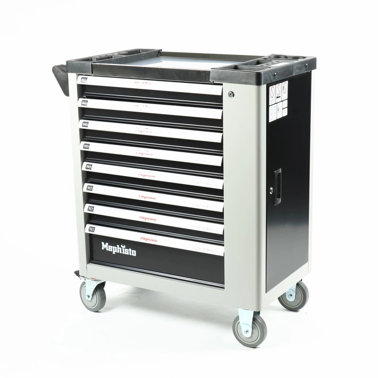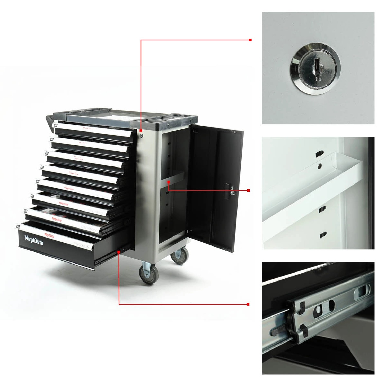 Profis aufgepasst! Der Stix UltimatePro D12/TS2 Werkzeugwagen ist das absolute Dream-Paket für jede Werkstatt. Im Lieferumfang ist nicht nur der hochwertige Wagen mit 12 kugelgelagerten Schubladen enthalten, sondern auch ein komplettes 451-teiliges Cr-V Werkzeugset! Die massive Edelstahl-Arbeitsplatte (1020x460mm) ist kratzfest und chemikalienbeständig - perfekt für alle Montagearbeiten. Die Schubladen schließen sanft und sind alle gemeinsam mit einem Zentralschloss verriegelbar. Mit den 4 voll drehbaren Rollen (125mm Durchmesser) mit Bremsen ist der Wagen super mobil und standsicher. Die perforierten Seitenwände bieten Platz für zusätzliches Zubehör. Das Werkzeugset enthält alles was das Herz begehrt: Stecknüsse, Ratschen, Schraubendreher, Bits, Zangen und vieles mehr - sicher in Schaumstoffeinlagen verstaut. Ein All-in-One-Paket für echte Profis!