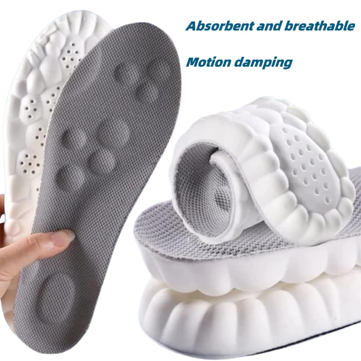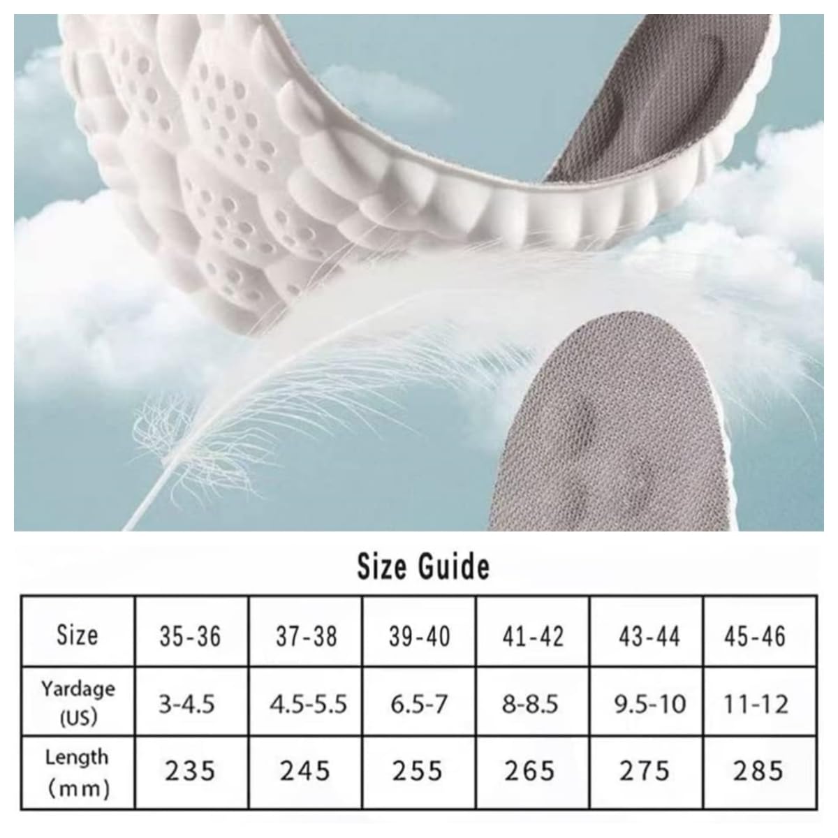 Deine Füße werden dir danken! Diese Cloud-Einlagen mit Memory Foam und Gel-Technologie sind wie ein Spaziergang auf Wolken. Egal ob du den ganzen Tag stehst, viel läufst oder Sport machst - diese Einlagen polstern jeden Schritt perfekt ab. Sie sind atmungsaktiv, reduzieren Schweißbildung und halten deine Füße trocken. Die 4D-Polsterung verteilt den Druck gleichmäßig und entlastet so Gelenke und Muskulatur. In den Größen 37-43 erhältlich und mit flexiblen Rändern, die du ganz easy auf deine Schuhgröße zuschneiden kannst. Perfekt für Sportschuhe, Stiefel oder Alltagsschuhe. Ob beim Wandern, Reisen, auf der Arbeit oder einfach zu Hause - mit diesen Einlagen bleibst du den ganzen Tag über beschwerdefrei. Einfach in deine Lieblingsschuhe legen und den Komfort genießen!