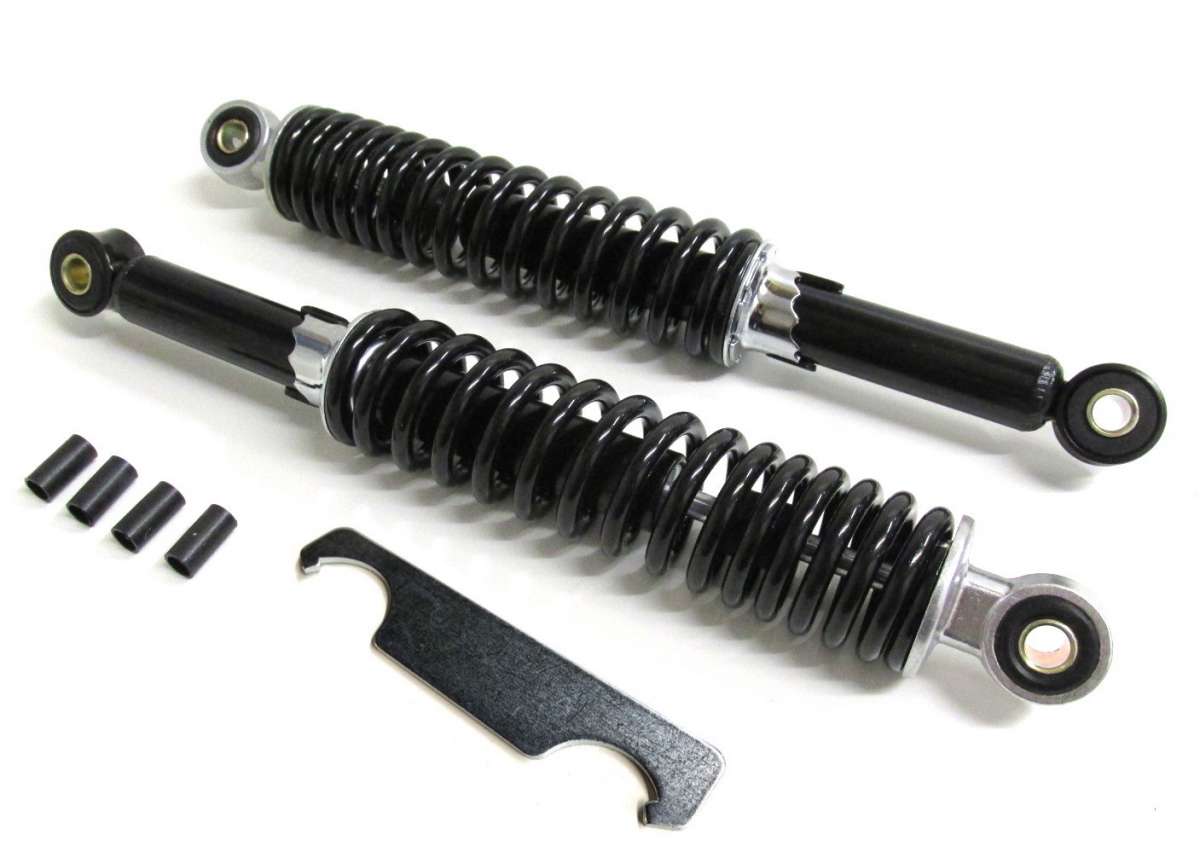 Mofa-Fans, aufgepasst! Dieses chromfarbene Stoßdämpfer-Set bringt deine Federung aufs nächste Level! Die hydraulischen Stoßdämpfer sind satte 280 mm lang und 5-fach verstellbar - so kannst du die Dämpfung genau an deine Fahrweise und die Straßenverhältnisse anpassen! Im Lieferumfang ist alles dabei, was du brauchst: 2 Stoßdämpfer in glänzendem Chrom, 4 Reduzierhülsen (um den Augendurchmesser von 10 auf 8 mm anzupassen) und sogar ein praktischer Einstellschlüssel! Die Verarbeitung ist richtig hochwertig und die chromfarbene Oberfläche sieht nicht nur gut aus, sondern ist auch rostbeständig. Einfach montieren und sofort den Unterschied spüren - dein Mofa oder Moped fährt sich viel smoother und komfortabler! Ob auf holprigen Straßen oder beim Cruisen durch die Stadt - mit diesen Stoßdämpfern macht das Fahren noch mehr Spaß! Einfach bestellen und die verbesserte Fahrperformance genießen!