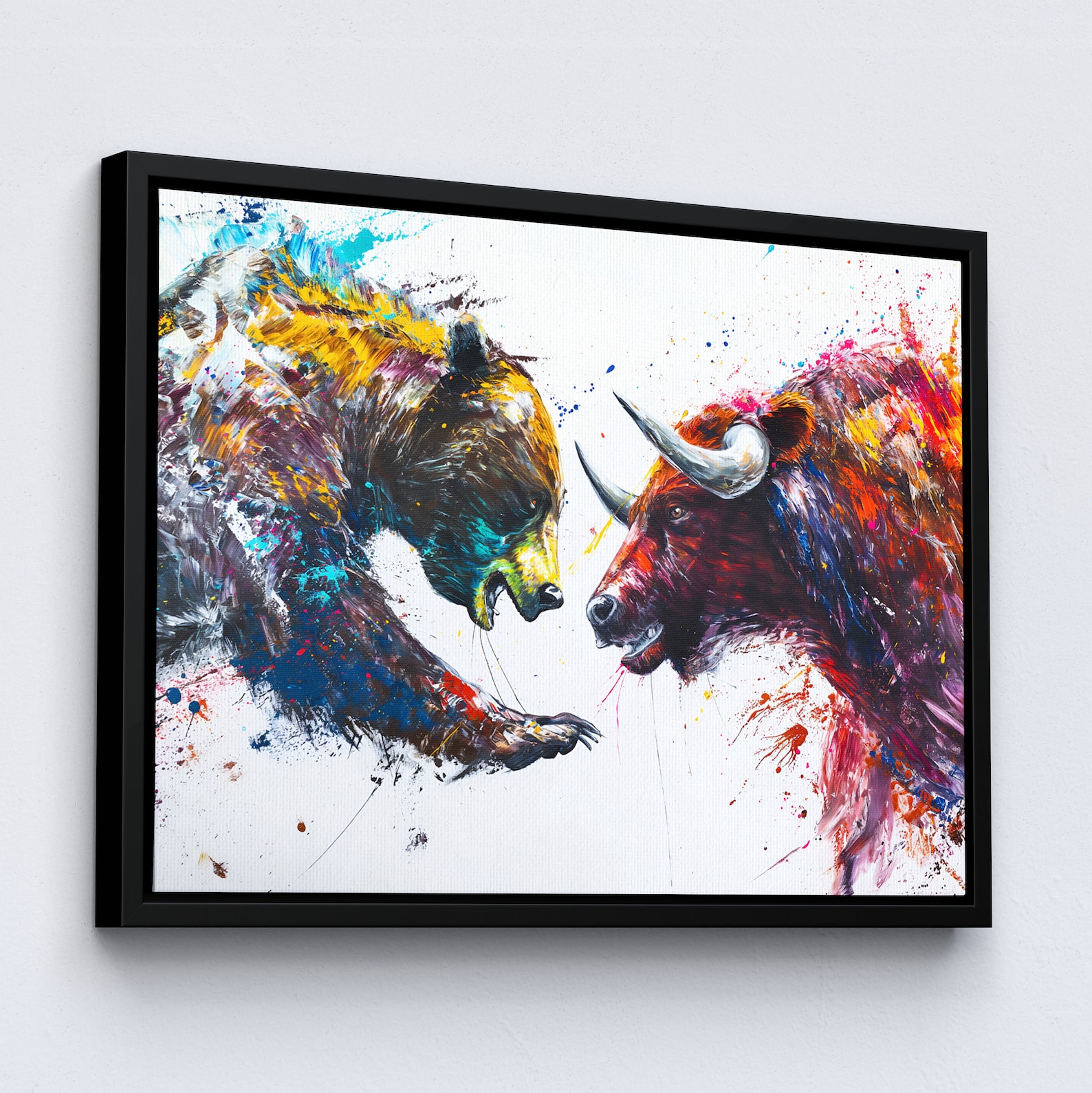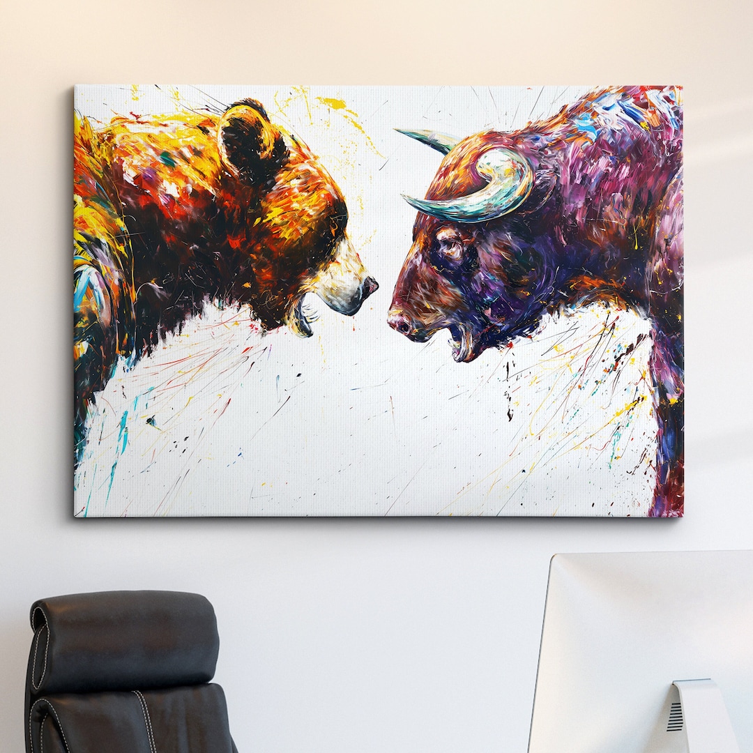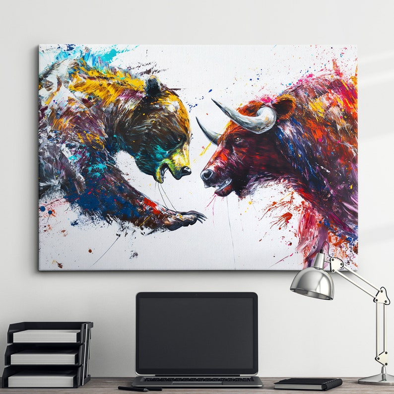 Für alle Börsenfans und Finanzbegeisterte! Dieses coole Bear vs Bull Motiv ist perfekt fürs Home-Office, Büro oder Wohnzimmer. Das Bild zeigt das klassische Börsensymbol in modernem Design - einfach stylisch! Mit den Maßen 30,5x40,6 cm ist es ideal für verschiedene Räume. Die Leinwand ist hochwertig bedruckt, auf einen soliden Holzrahmen gespannt und bereits fertig gerahmt geliefert. Ein großer Vorteil: Die Oberfläche ist wasserfest - du kannst Staub einfach mit einem feuchten Tuch abwischen. Das Aufhängen ist super einfach: Haken und Zubehör sind bereits im Lieferumfang enthalten. Perfekt für alle, die ihrem Zuhause oder Büro eine persönliche Note verleihen wollen. Ob im Konferenzraum, Flur oder Wohnzimmer - dieses Motiv kommt immer gut an. Auch ein tolles Geschenk für Kollegen, Freunde oder Familienmitglieder, die sich für Finanzen interessieren. Geburtstage, Weihnachten oder einfach mal so - dieses Bild ist immer passend. Bringt Farbe und Stil in deine vier Wände und zeigt deine Leidenschaft für die Börse!