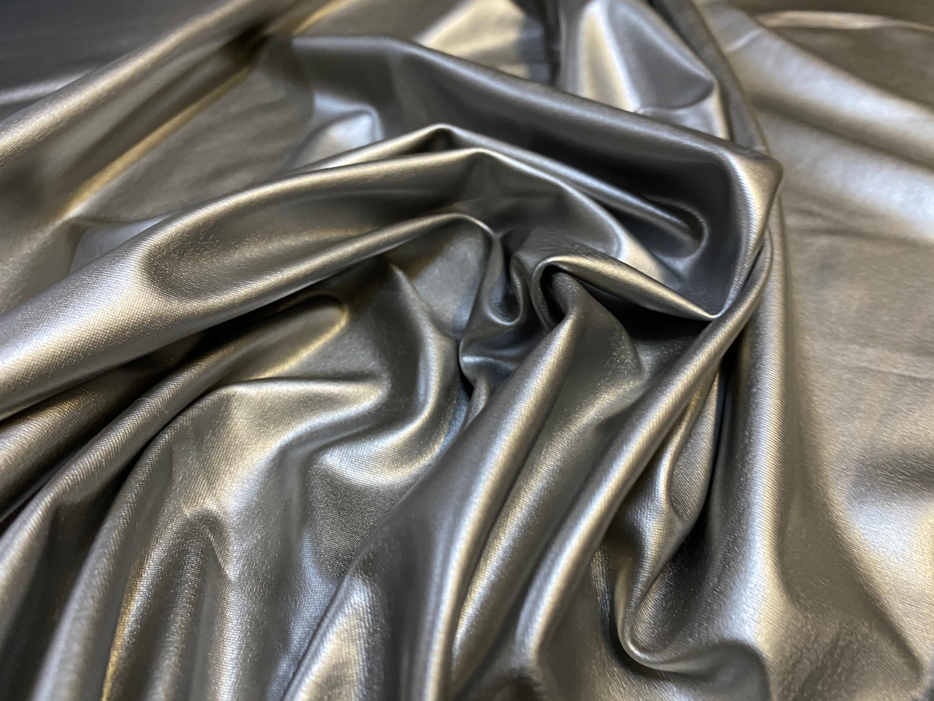 Näherinnen und Fashion-Designer, dieser Stretch-Lamé-Jersey-Stoff in Metallic-Grau ist ein absoluter Hingucker! Mit 150 cm Breite und Elastan-Anteil für perfekte Dehnbarkeit - ideal für enganliegende Kleidung, die trotzdem bequem ist. Die metallische Oberfläche glänzt wunderschön und verleiht jedem Outfit sofort einen glamourösen Touch. Perfekt für Abendkleider, Party-Tops, Tanzkostüme oder auch für besondere Accessoires! Artikelnummer J1-1806 - damit findet ihr easy wieder den gleichen Stoff! Bei Bestellungen über 1 Meter liefern wir eine durchgehende Stoffbahn - super praktisch für größere Projekte! Zu £7,99 pro Meter ein fairer Preis für diese Qualität! Einfach zuschneiden, nähen und sich über das glänzende Ergebnis freuen! Absolut empfehlenswert für alle, die ihren Kreationen etwas Besonderes verpassen wollen!