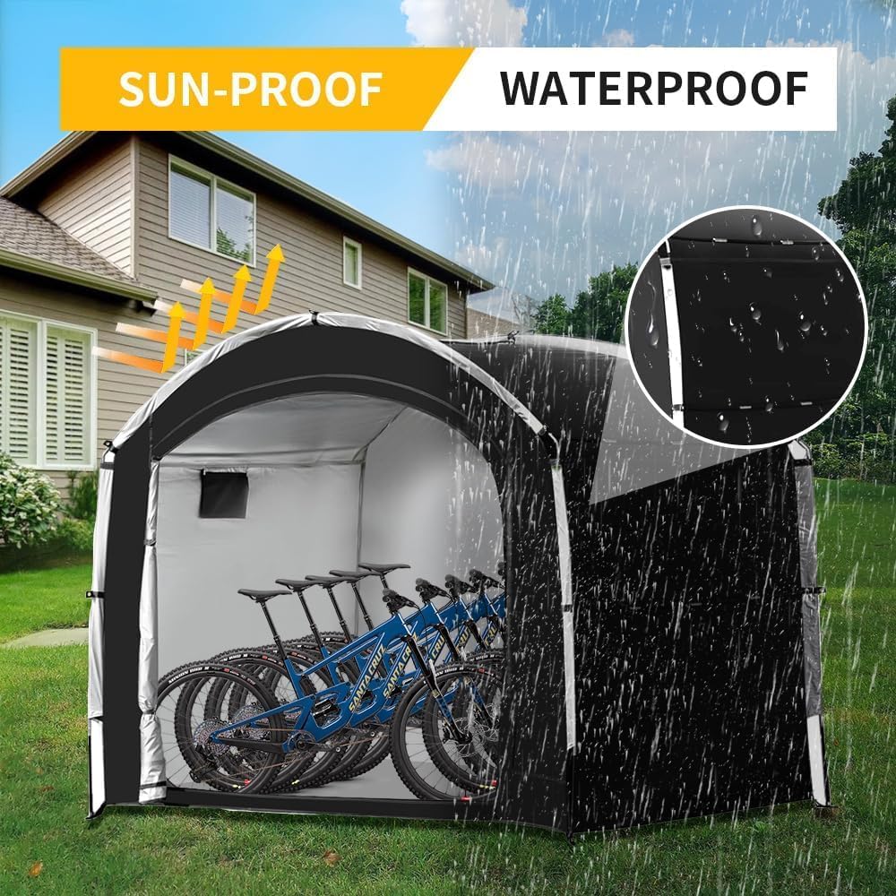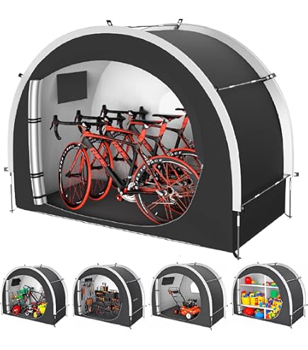 Stell dir vor: Deine Fahrräder und Motorräder stehen sicher und trocken unter diesem praktischen Staufzelt! Aus robustem 210D Oxford Stoff mit PU4000 Beschichtung - da kann Regen, Schnee oder Sonne kommen, deine Sachen bleiben geschützt. Und der Stauraum? Mega! Bis zu 4 Fahrräder oder 2 Motorräder passen da rein. Oder eben Gartenwerkzeuge, Rasenmäher, Spielzeug - was auch immer Platz braucht. Aufbauen? Total einfach - wie ein Zelt. In 8 Minuten steht das Ding. Und wenn du es nicht brauchst, faltest du es zusammen und verstaut es platzsparend. Mit Reißverschlusstür und Belüftungsfenster, damit nichts schimmelt. Perfekt für Garten, Terrasse oder Garage - deine Ausrüstung ist immer sicher untergebracht!