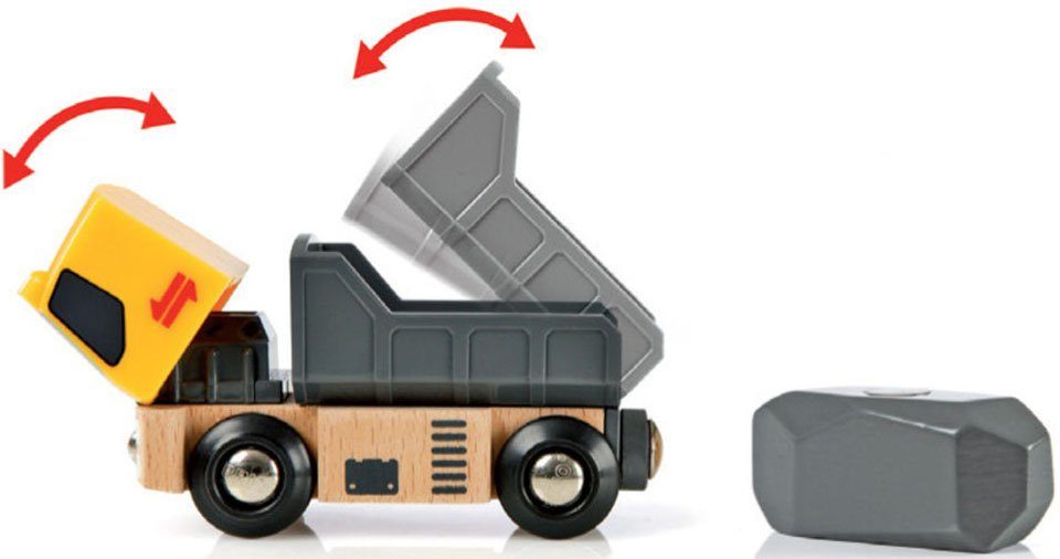 Abenteuer garantiert mit dem BRIO Steinverlade Set! Dieses vielseitige Spielzeug vereint Straßen und Schienen in einem spannenden Spieleset. Enthalten sind zwei Lastwagen und ein Zug mit Kran, der Steine laden und transportieren kann. Kinder können die Felsbrocken vom Zug in die Lastwagen umladen und so spielerisch logisches Denken und Feinmotorik fördern. Aus hochwertigem Holz gefertigt und mit den anderen BRIO Sets kombinierbar. Perfekt für kleine Baustellenfans und Eisenbahnliebhaber ab 3 Jahren. Stundenlangen Spielspaß mit robustem Spielzeug, das Generationen überdauert. Hol dir die Welt von BRIO nach Hause!