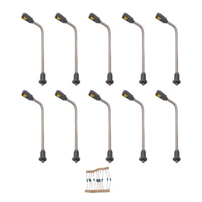 Für alle Modelleisenbahn-Fans der Z-Spurweite! Diese 10 kleinen LED-Straßenlaternen bringen Leben in deine Miniaturstadt. Mit nur 3,2cm Höhe im Maßstab 1:200-1:220 passen sie perfekt zu deinem Z-Gauge Layout. Jede Laterne hat eine eigene LED und leuchtet schön gleichmäßig. Wichtig: Sie laufen mit 3V Gleichstrom und 20mA - also nicht direkt an 12V oder 16V anschließen! Im Lieferumfang sind 10 Widerstände dabei, falls du einen 12-16V Transformator hast. Einfach in Reihe schalten und schon leuchten sie sicher. Aus Metall gefertigt sehen sie täuschend echt aus und machen deine Bahn-Anlage erst komplett. Ob am Bahnsteig, entlang der Straßen oder um Gebäude - mit diesen Laternen wird alles viel gemütlicher. Für Modellbauer ab 14 Jahren geeignet. Baue dir deine eigene kleine erleuchtete Welt!